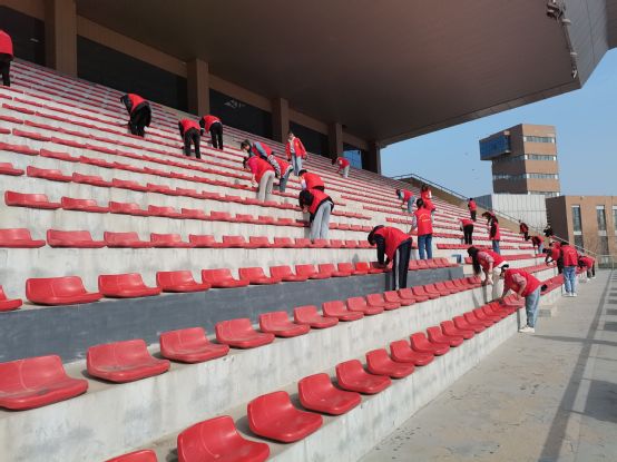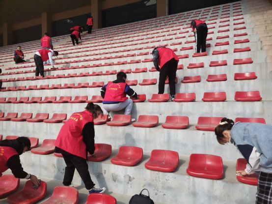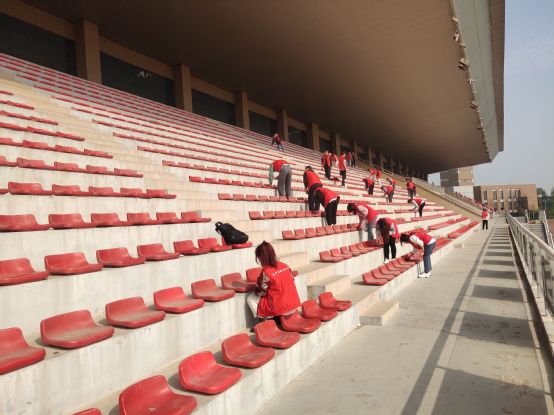 4月10日清晨,旭日东升,春风夹杂着芳香拂面而过,令人心旷神怡。活动开始前,青年志愿者联合会羲和分会相关负责人进行前期宣传,召集志愿者并对其进行前期培训及信息登记,制定相关规章制度,确保活动顺利且有序的进行。本次活动主要由实践部的人员进行协作,负责人及参加活动的志愿者都统一穿着志愿者马甲,衣着庄重且严谨。在活动进行中,羲和书院的志愿者们相互配合,明确分工,合理计划安排打扫时长,尽自己的绵薄之力将观众席一个一个认真的清理干净,有力彰显了志愿服务精神,体现出我校青年志愿者积极向上,办事认真高效的精神风貌。这次的活动不仅促使志愿者们积极投身到劳动中去,也深刻领悟了爱护公物的重要性。在志愿者及负责人共同的努力下本次活动圆满结束。