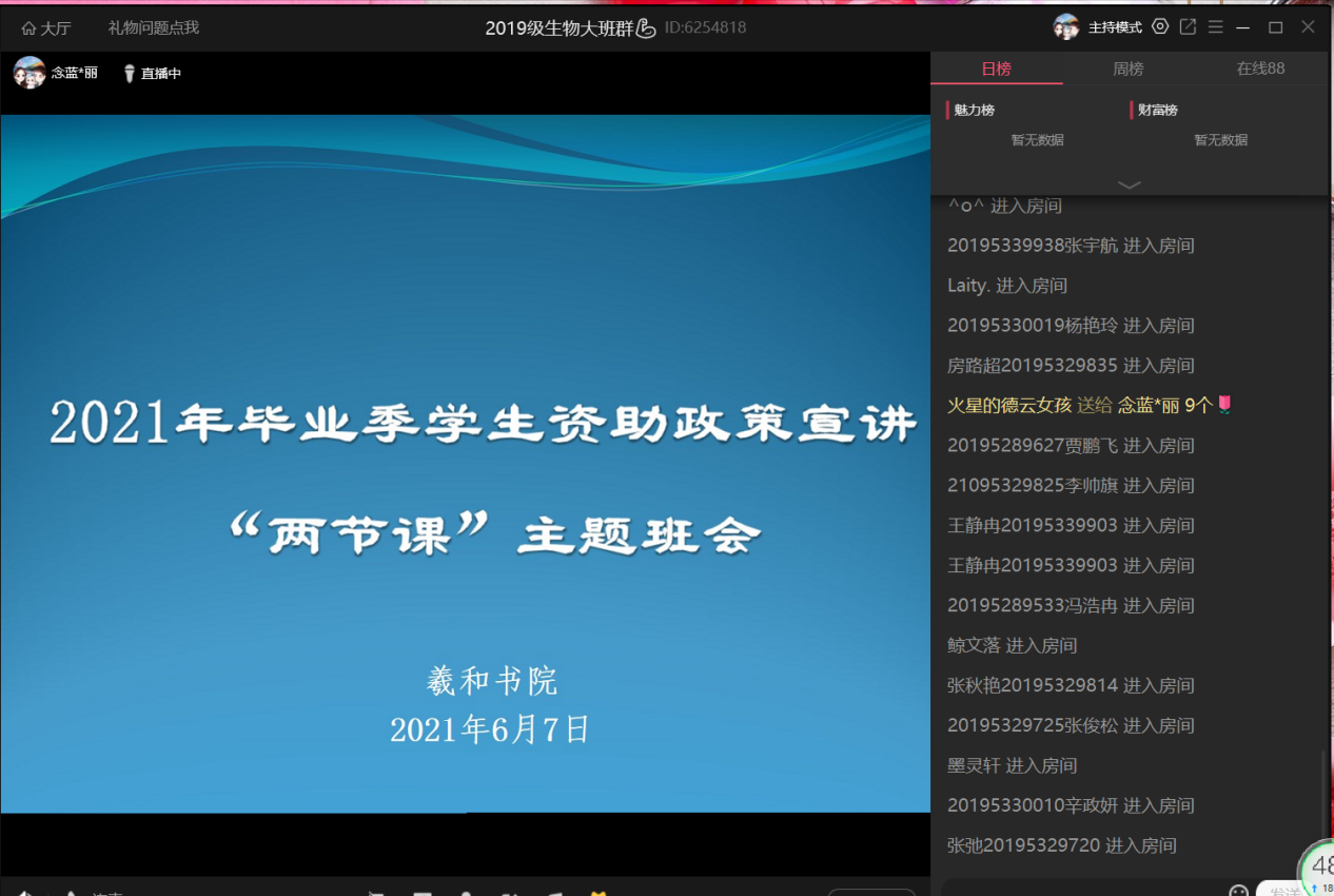 为认真落实学生资助“两节课”制度,切实做好学生资助政策的宣讲教育工作,使广大学生能够继续深入了解学生资助的各项政策,6月7—16日,羲和书院积极组织开展2021年毕业季学生资助“两节课”政策宣讲主题教育活动。