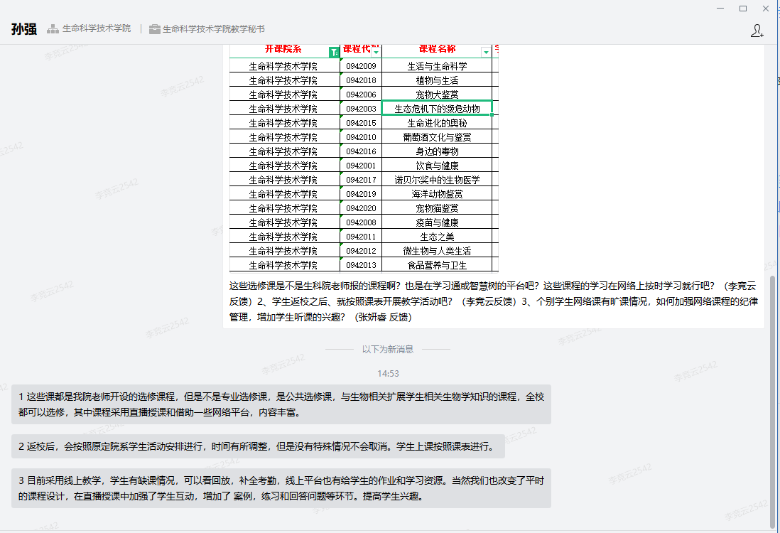 生命科学技术学院反馈: