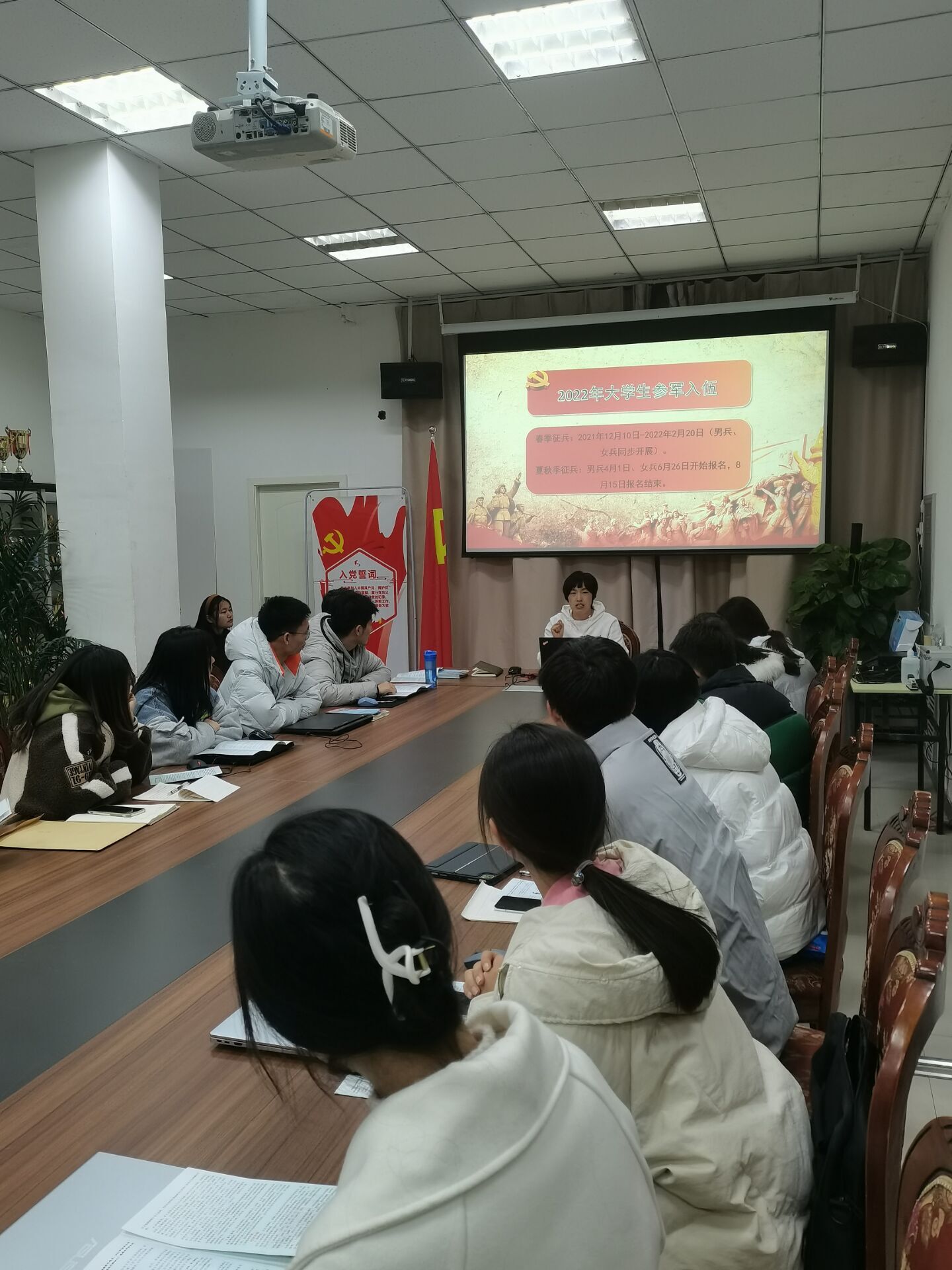 11月21日,我书院在会议室举行2022年大学生征兵工作动员宣讲会,60余名学生参加宣讲会。