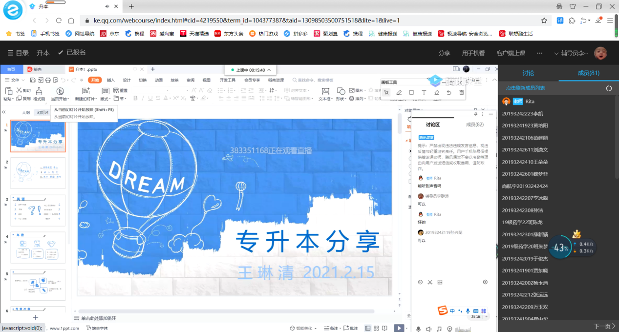 年前,2019级专科药学班级辅导员李群涛老师的聊天工具异常繁忙了起来。同学们一个接一个的询问李老师关于升本的相关问题。他们在高考中没有出色稳定的发挥,同学们都想把握住仅有的一次升学机会。“老师,我想了好长时间,我到底是步入社会工作还是继续考学提升学历?”“老师,现在都大三了,还剩不到半年的时间,我该怎么复习?我对我的专业升学方面的情况一点都不知道,老师我这种情况怎么办?”这是所有同学问最多的问题。李老师通过组织线上云端的班会进一步了解了相关情况,随即联系了2021级专升本药学专业班级辅导员石秋子老师,希望该班级支持组织安排进行“通往春天的列车—专升本备考分享会”。
