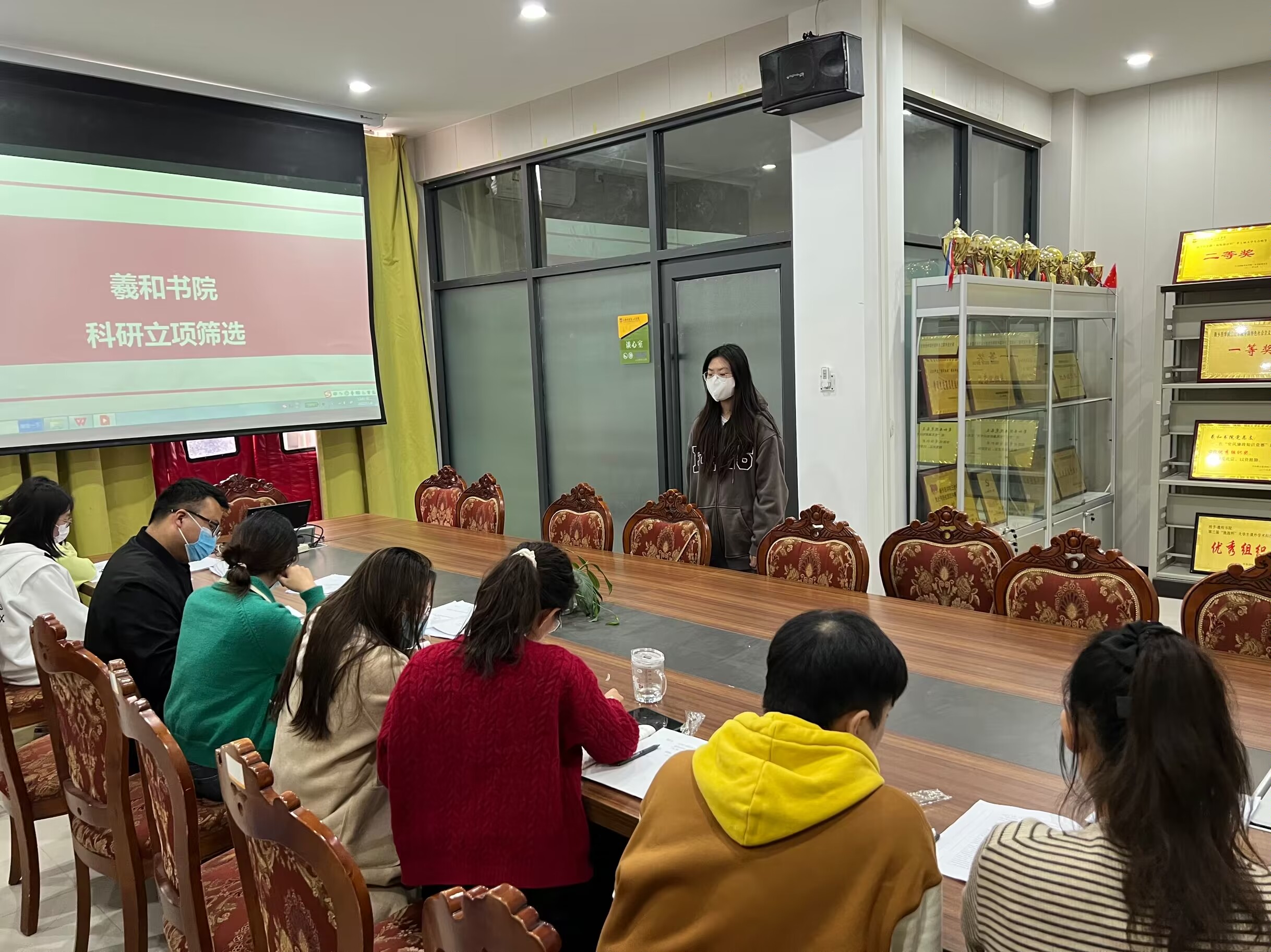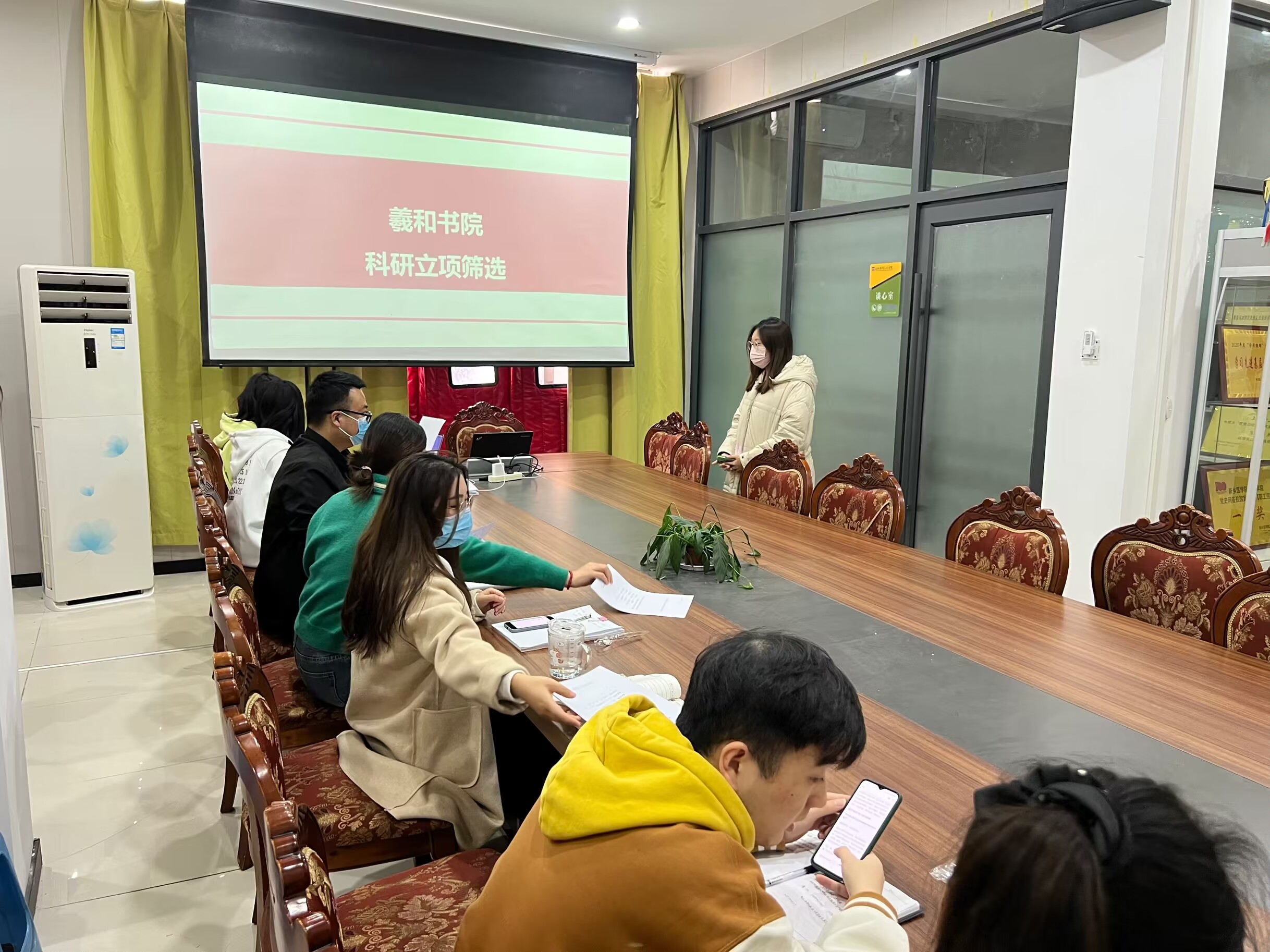 为了提高学生的科研素养,增强书院师生的团队协作能力,促进书院科学创新和医学素养全面发展。羲和书院于11月8日在书院会议室开展科研立项文件的筛选工作,由羲和书院指导老师申田裕及学生会组织成员共同进行。