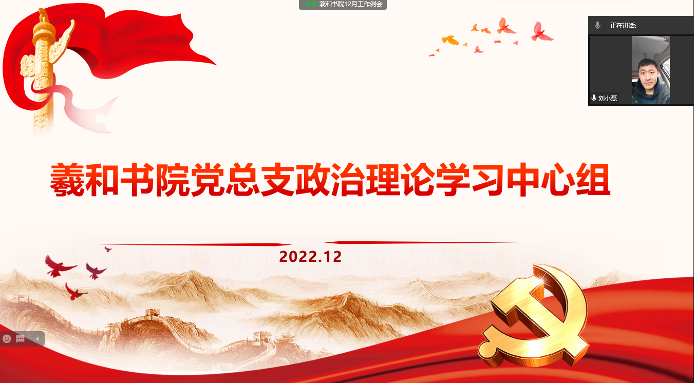 12月20日上午,羲和书院党总支理论学习中心组在腾讯会议召开政治理论学习会议,会议由羲和书院党总支副书记刘小磊主持,党总支中心组全体成员参加了本次会议。本次学习会议采用“书记领学+集体学习+研讨+自学笔记”的方式进行。