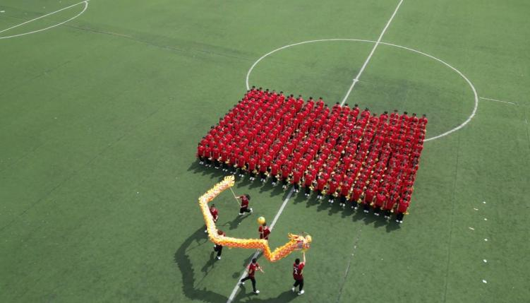 小太阳们手中的中国龙,飞腾在操场之上,巨龙腾飞如同我们正在复兴中的中华!现如今,我国正处于伟大复兴的关键时刻,如风筝对风的追逐,伟大民族复兴梦是我们前进的方向,伟大民族复兴梦是我们前进的力量。飞龙在天,腾飞于九州之间。