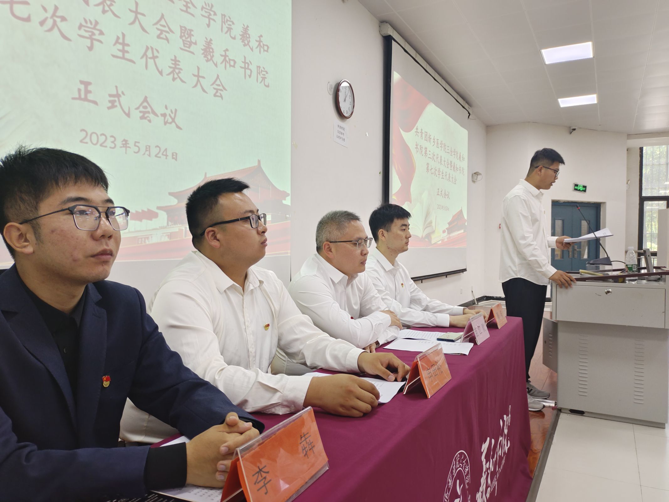 在正式会议上听取《共青团新乡医学院三全学院羲和书院第三次团代会委员会工作报告》、《羲和书院第七次学代会委员会工作报告》、《共青团新乡医学院三全学院羲和书院第三次代表大会暨羲和书院第七次学生代表大会提案工作报告》,同时介绍羲和书院第十九届学生委员会委员候选人的基本情况,并由学生代表团投票选举羲和书院第十九届学生委员会委员,随后由总监票人李绍魁公布本次大会的选举结果。