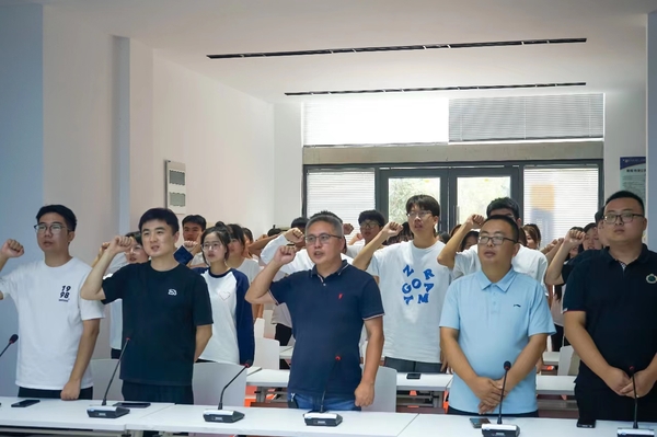 会议最后,新一届学生干部代表李一凡带领学生组织全体成员宣誓,大家慷慨激昂,对新一年的工作充满信心。