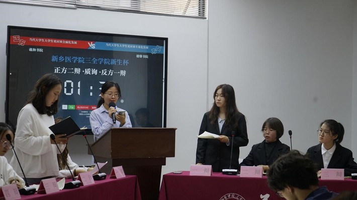 半决赛以学校教育管理与个人如何发展为主题,以大学管理应侧重校规校纪还是自我管理以及大学生应该如何发展为辩题开展辩论,以此加强新生对学校教育理念和管理制度的了解。