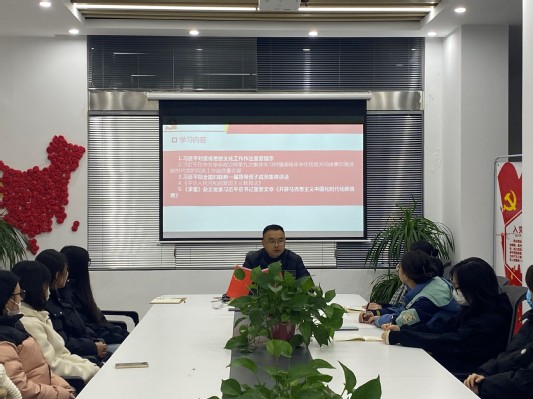 政治理论学习工作有支部书记李群涛同志领学。在学习《中华人民共和国爱国主义教育法》环节,李群涛指出“爱国主义教育应当坚持思想引领、文化涵育,教育引导、实践养成,主题鲜明、融入日常,因地制宜、注重实效。”;在学习《习近平在中共中央政治局第九次集体学习时强调铸牢中华民族共同体意识推进新时代党的民族工作高质量发展》文件环节,李群涛指明“习近平指出,铸牢中华民族共同体意识、推进新时代党的民族工作高质量发展,是全党全国各族人民的共同任务。各级党委和政府要坚持中国特色解决民族问题的正确道路,认真贯彻落实党的民族工作的各项方针政策,及时研究解决本地区本单位涉及民族工作的重大问题。”;在学习《习近平对宣传思想文化工作作出重要指示》文件环节,李群涛说“习近平强调,新时代新征程,世界百年未有之大变局加速演进,中华民族伟大复兴进入关键时期,战略机遇和风险挑战并存,宣传思想文化工作面临新形势新任务,必须要有新气象新作为。”等等。