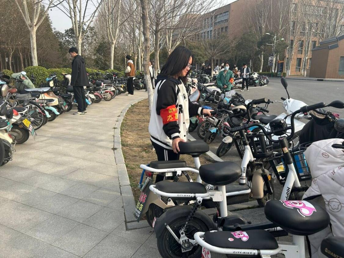 活动开始前,负责人向志愿者们详细讲解校园整洁的重要性、摆放车辆的方法及注意事项。随后志愿者们在分组后前往各自规定区域内进行车辆摆放,将倒地的车辆扶正并按序摆好,并将摆放杂乱的车辆重新整理;同时志愿者们也耐心地为每一位前来停车的师生提供帮助服务,引导过往同学获老师按指示规范停车,确保车辆不乱停乱放、不占道阻路。在志愿者们的共同努力下,凌乱的车辆被摆放地整整齐齐,俨然成为了学校里一道亮丽的风景线。参与活动的志愿者们以实际行动践行雷锋精神,用爱心和热情为校园环境增添鲜亮。