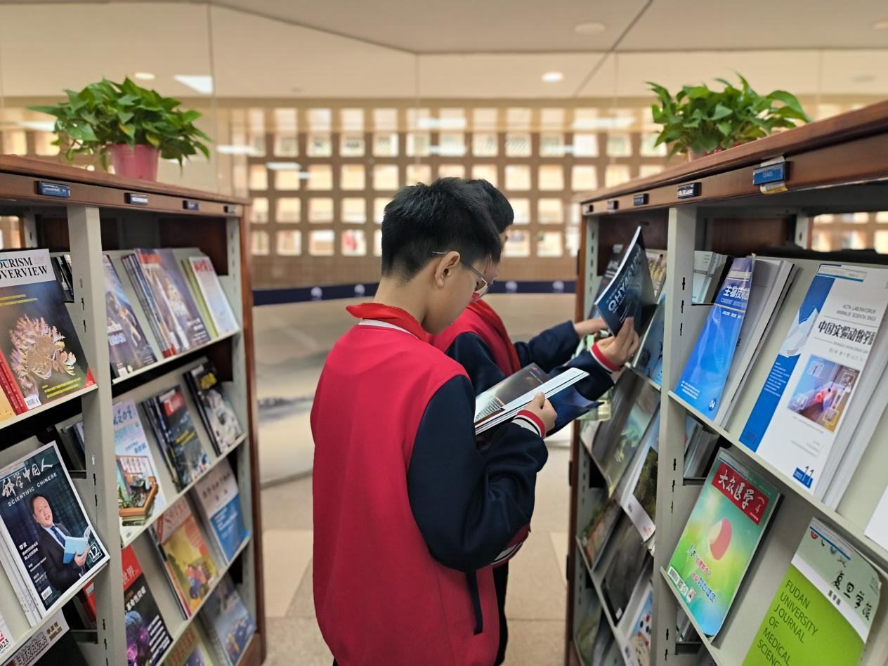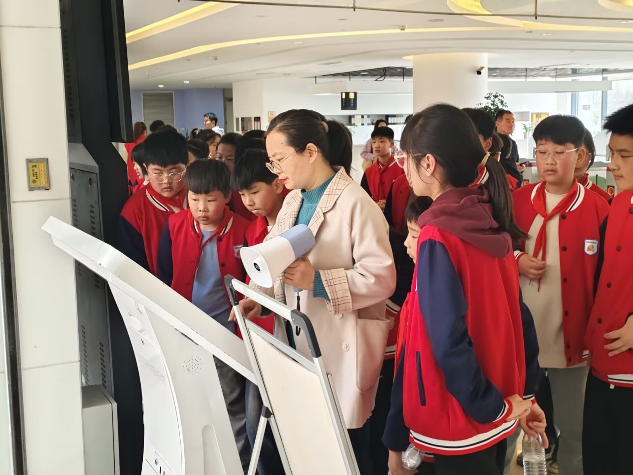 图书馆作为研学活动的第一站,不仅体现了我校对青少年要“多读书,读好书”的殷切期望,更是为学生们打开了一扇新世界的知识大门。宏伟学校的学生们在图书馆老师的讲解下,依次参观着图书馆的各种新型设施,“这台机器叫自动检索机,大家想看什么种类的书都可以在上面寻找,大家可以尝试一下......”还未等图书馆老师话说完,学生们便围住了机器,你一下我一下地尝试着这新型机器的使用方法。