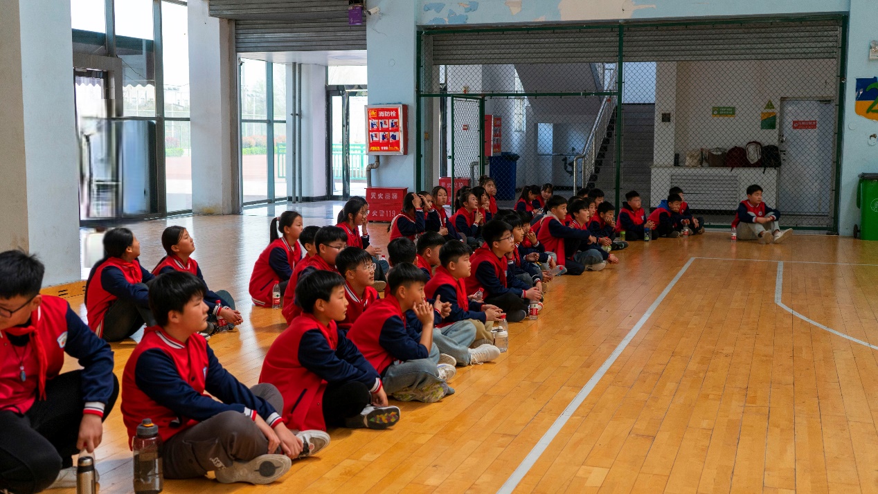 活动当天早上,胡校长带领六年级的学生们前来我校进行研学参观,与此同时志愿者们早早地在校门口等待着学生们得到来。大家在校图书馆门口整队集合,双方老师向学生们强调本次活动的主要内容以及注意事项,在志愿者们的引导下,开始本次研学活动。