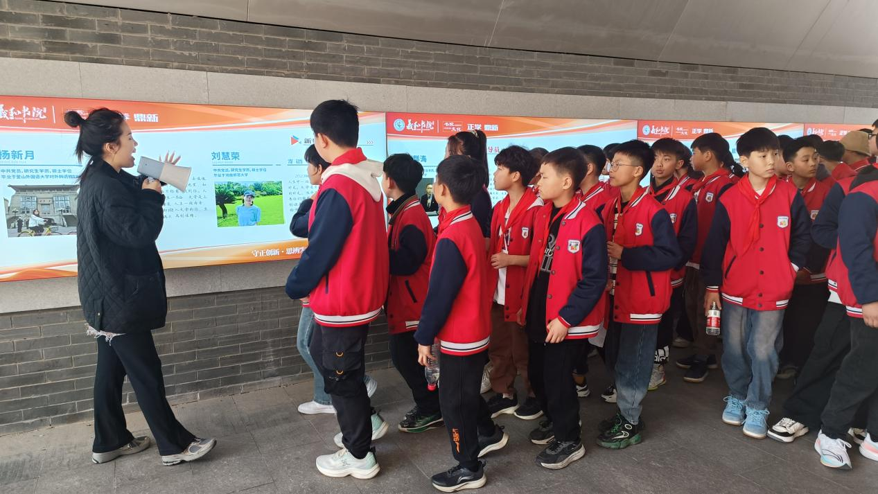 从图书馆出来后,学生们在志愿者讲解员的引领下,前往参观羲和、智行、仁智三个书院的功能区以及书院展览区。在面对仁智、智行书院多样化的功能区时,学生们目不暇接,被一件件、一台台智能设施所惊讶;参观至羲和书院文化墙时,学习了解到羲和书院“正学·鼎新”的精神文化。