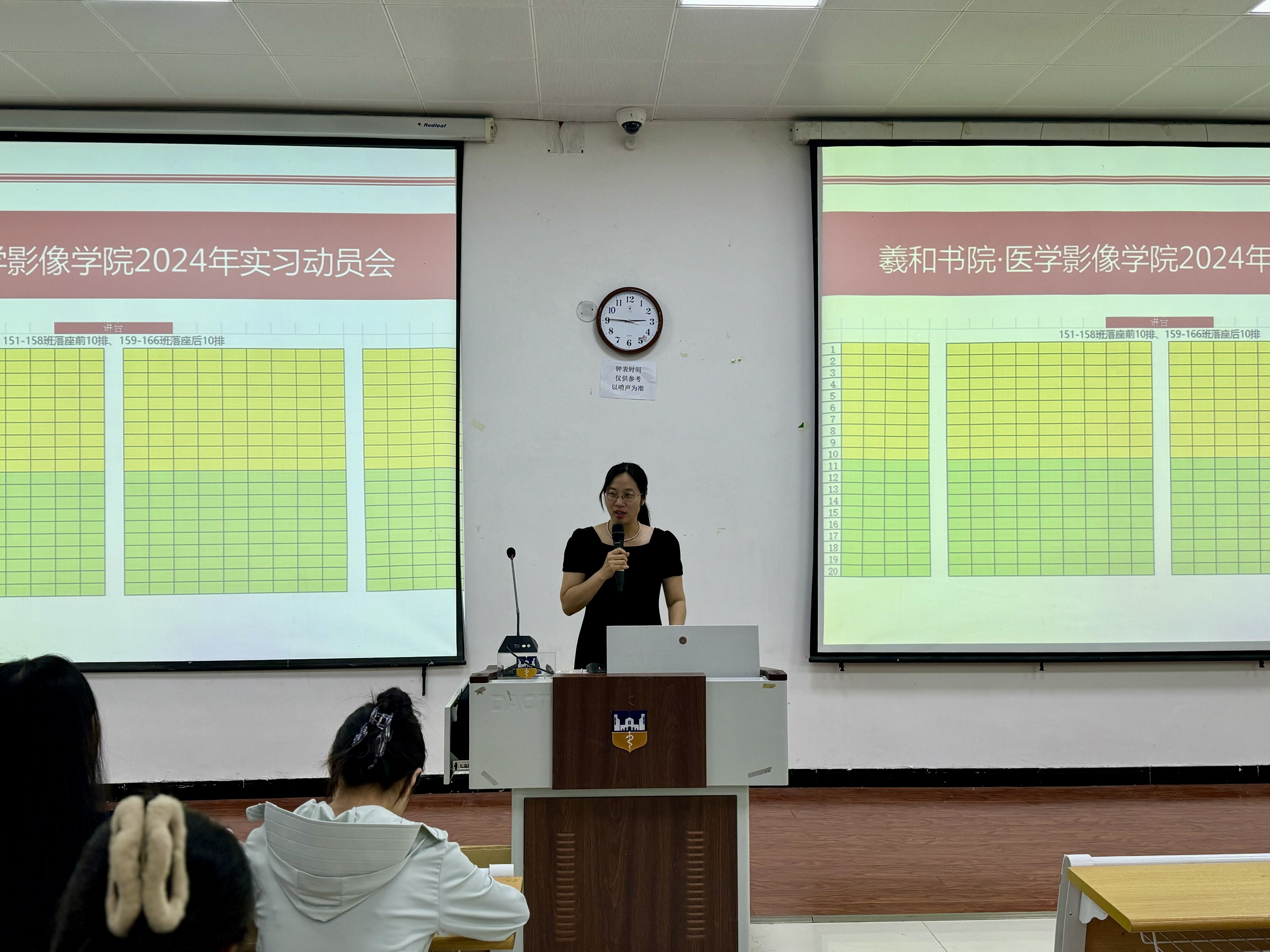 5月28日,羲和书院联合医学影像学院在谨学楼D1教室开展2024年实习动员会议。医学影像学院党总支副书记兼副院长苗莹莹、羲和书院辅导员李群涛、刘慧荣及2023级专升本医学影像技术151-166班全体学生参与本次动员会议。