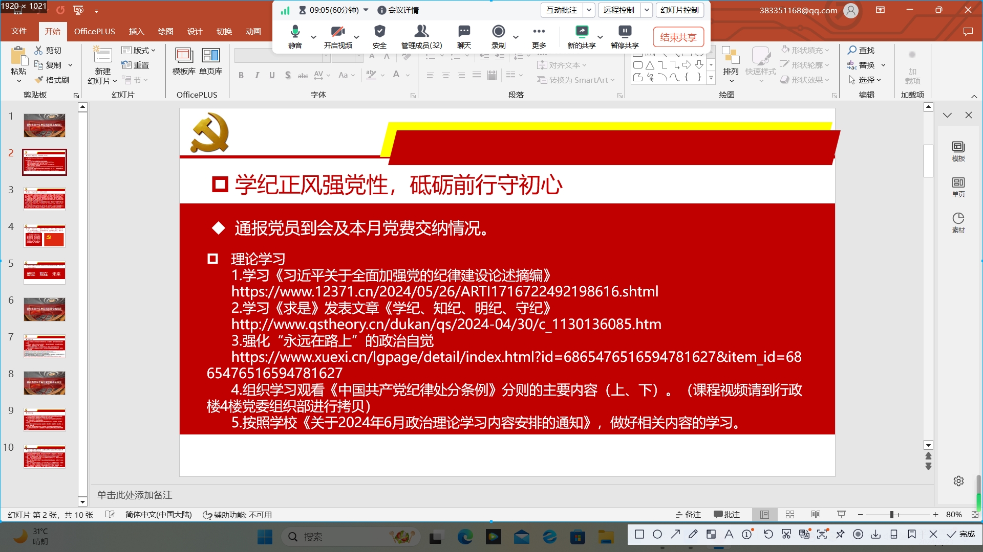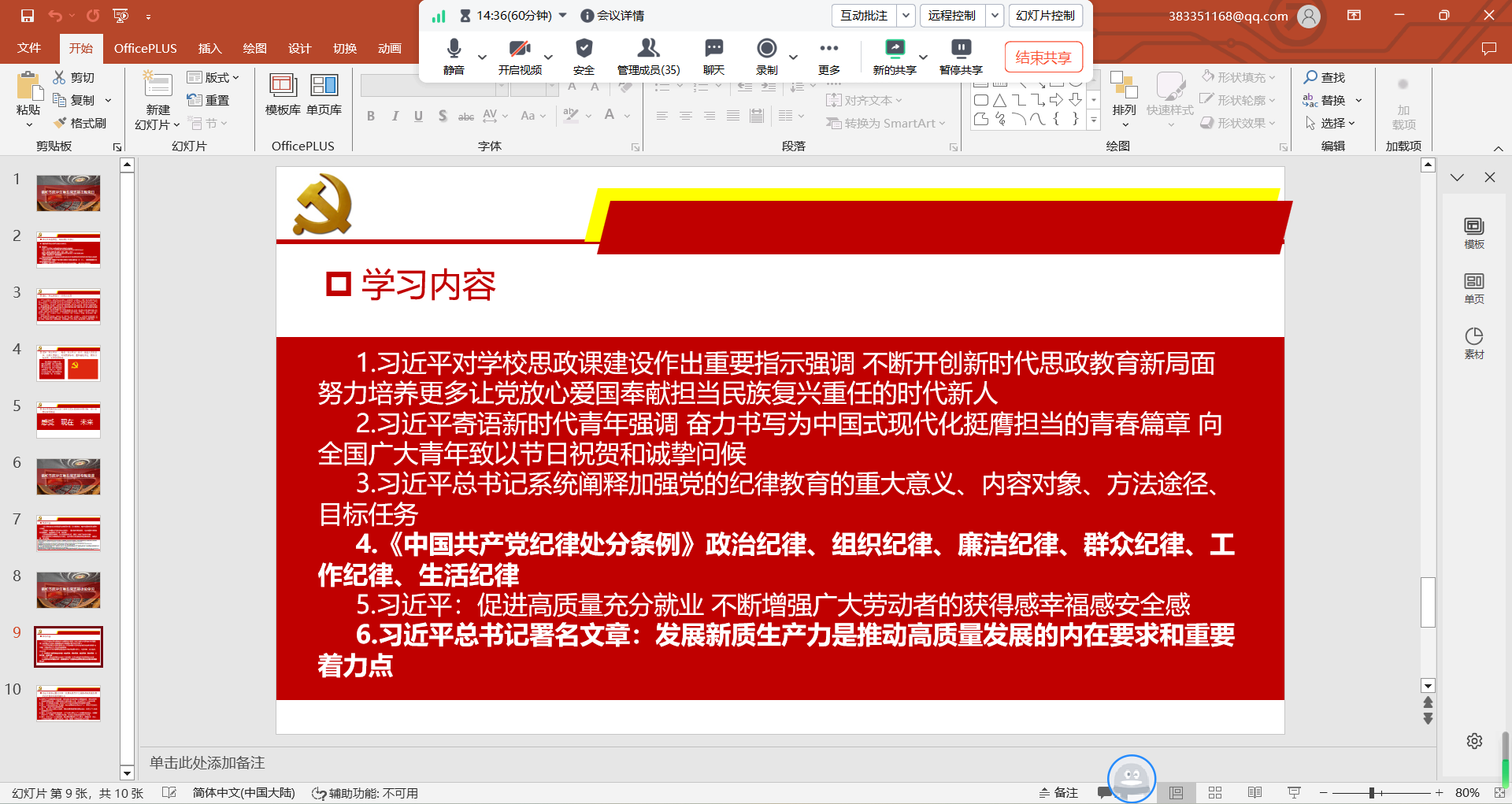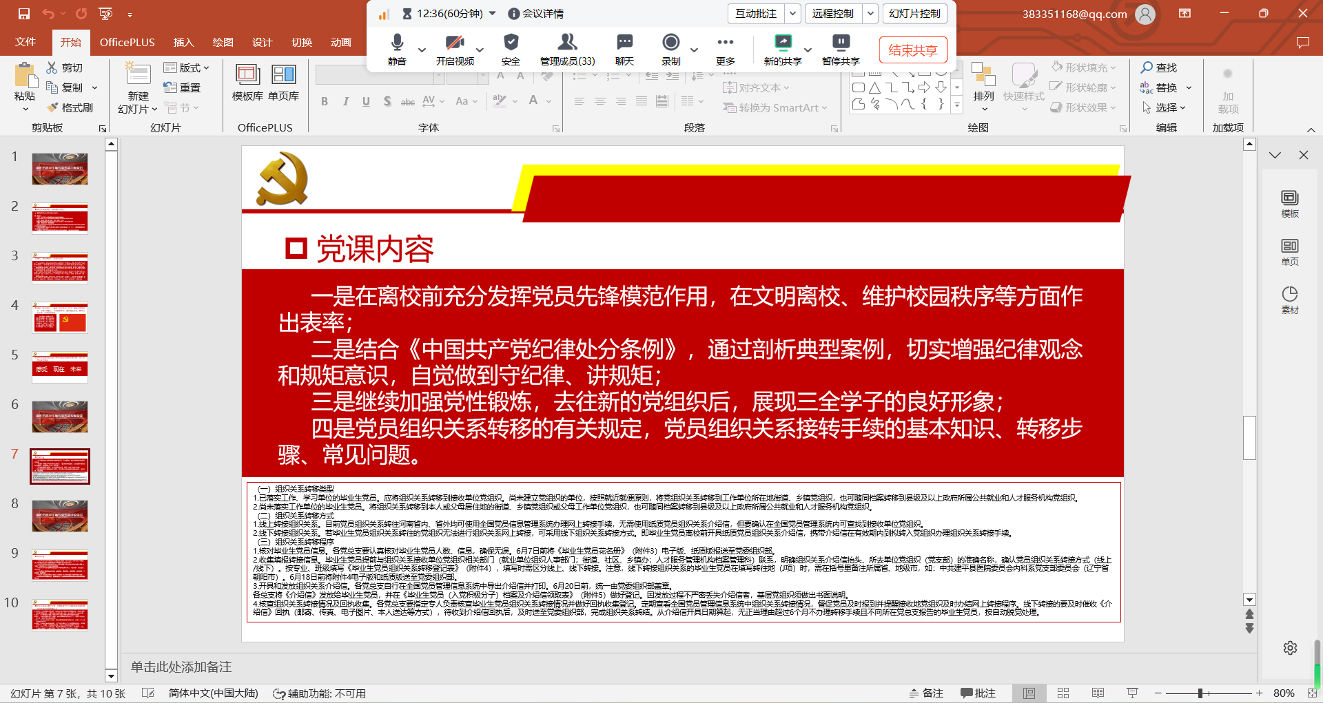 6月23日晚,羲和书院学生第五党支部在腾讯会议平台开展政治理论学习及主题党日活动,支部全体党员参加。