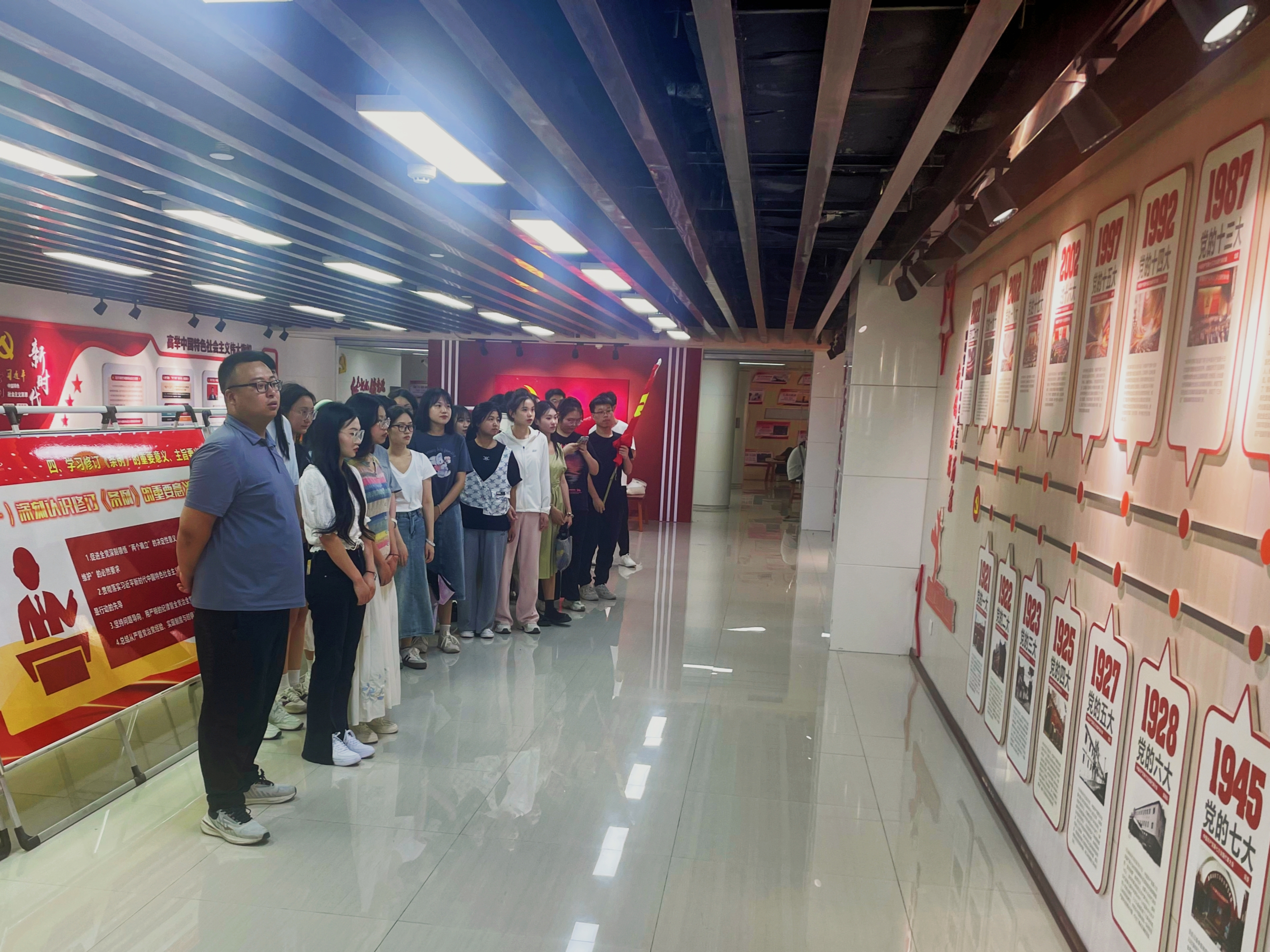为进一步推进党纪学习教育走深走实,引导广大学生党员强化政治意识和纪律意识,筑牢拒腐防变的思想防线,6月19日下午,羲和书院学生第七、第九党支部联合开展“学纪正风强党性,砥砺前行守初心”党纪学习教育主题党日活动,羲和书院学生第七党支部书记申田裕带领2022级药学专升本28名毕业生党员参观新乡医学院三全学院党史学习馆。