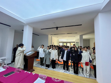 接着,学生会主席苗玉洁同学带领全体学生组织干部进行宣誓,表明决心,以昂扬姿态树立羲和书院学生的良好榜样。