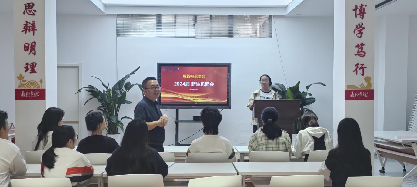 羲和书院李竞云老师与同学们展开详细交谈。他高度评价了本次新生见面会的成功举办,并对新生们寄予了厚望,希望同学们能够珍惜在思哲辩论协会的每一刻时光,积极参与协会的各项活动,不断提升自己的综合素质和辩论能力