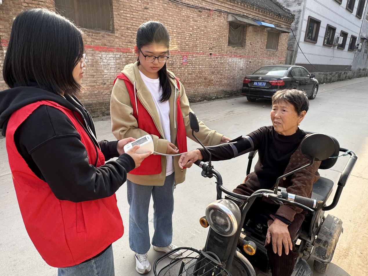 29日下午两点,志愿者们准时抵达老庄村村委会,并以老庄村村委会为中心,分两队散开进行志愿服务活动。一队志愿者深入村民家中,慰问一些身体有碍的独居老人,并做一些打扫卫生、聊天解闷等力所能及的事情;携带血压血糖仪,在村街道中为村里的老人测量血糖血压,并为其详细记录每一项数据。针对个别血压异常者,志愿者不仅给予了即时反馈,还提供了科学的健康指导,倡导合理膳食与适度运动,力求从源头防范健康隐患,筑起一道坚实的防护墙。活动间隙,志愿者主动与村民交谈,倾听他们的故事与需求,送上关心与安慰。活动结束后,村里的老奶奶拉着志愿者的手,由衷地感谢志愿者们的帮助。老庄村干部也表示,“咱们的青年志愿者年轻有活力,经常来慰问慰问村里的独居老人,能给他们带来不少的欢声笑语呢”。