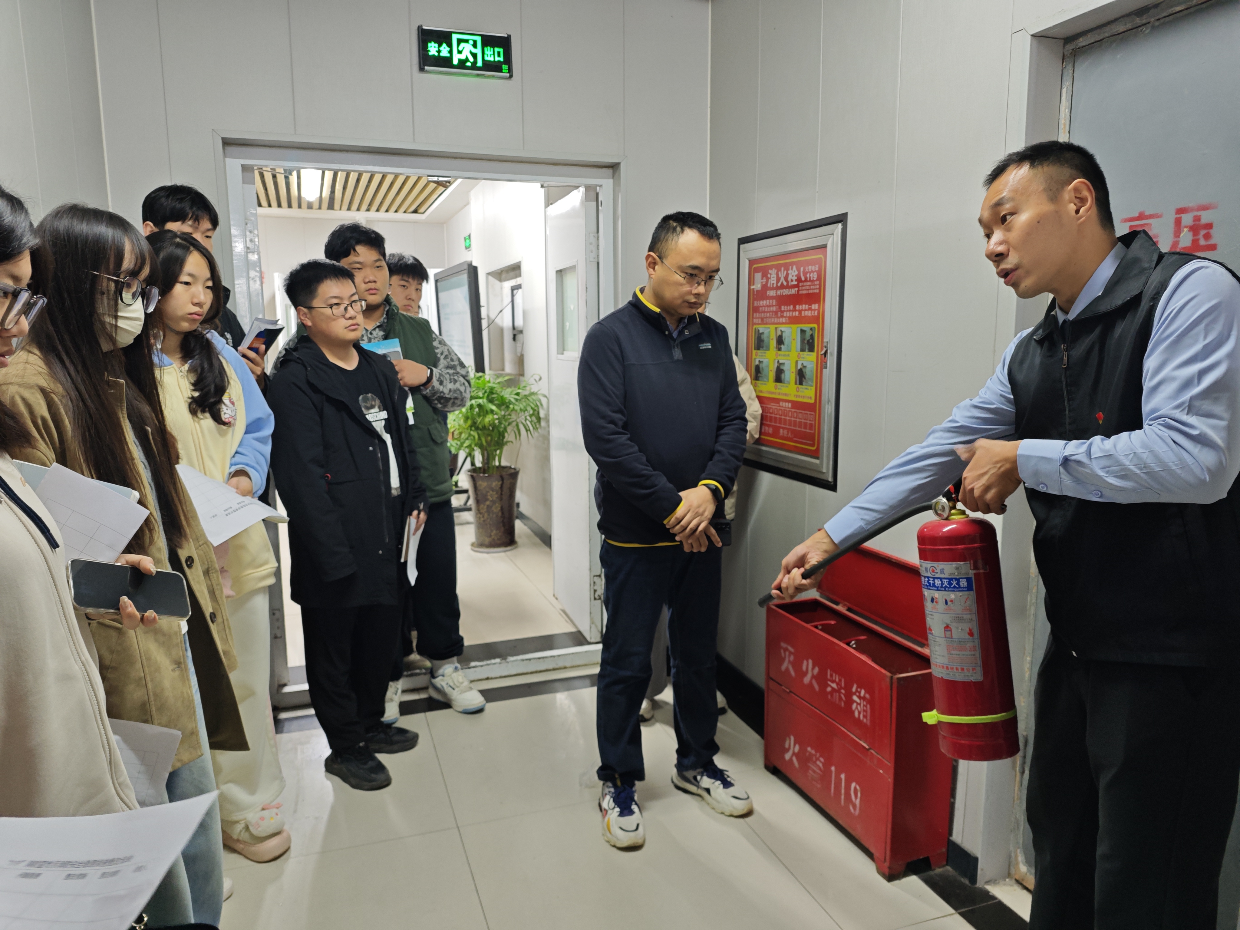 2024年11月16日上午,河南省消防协会教员陈明指导羲和书院消防安全隐患排查。