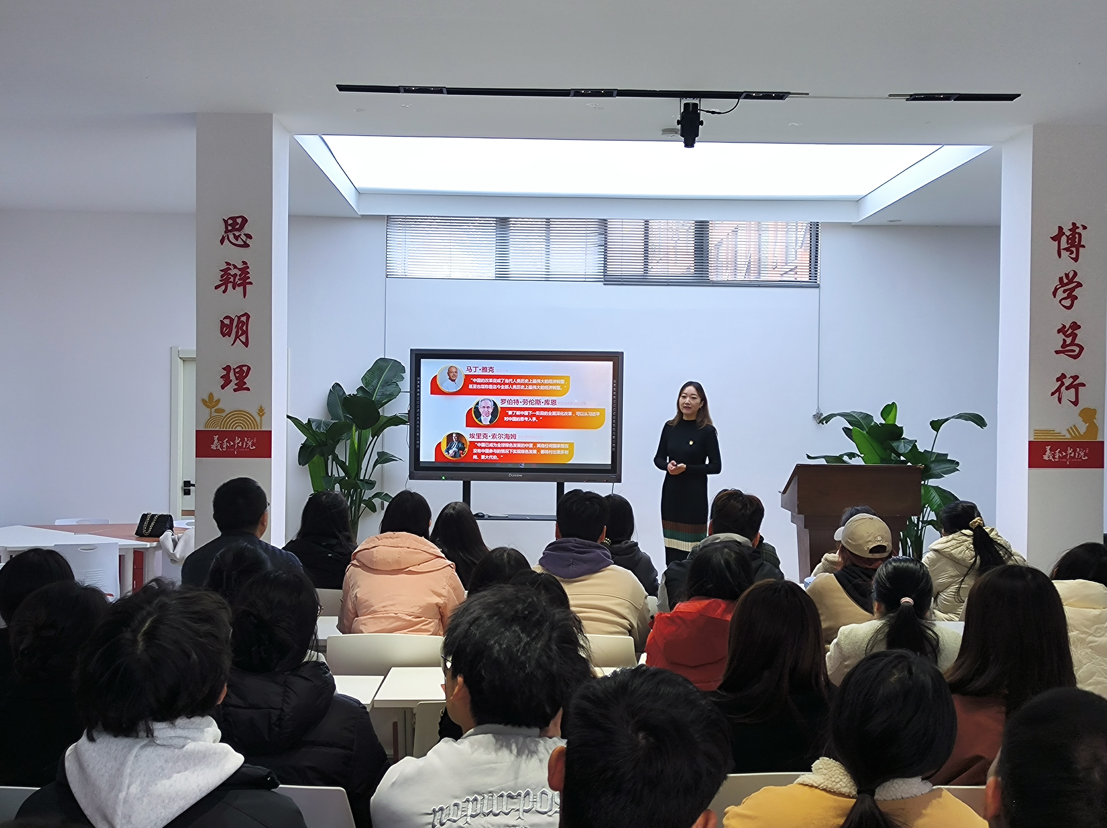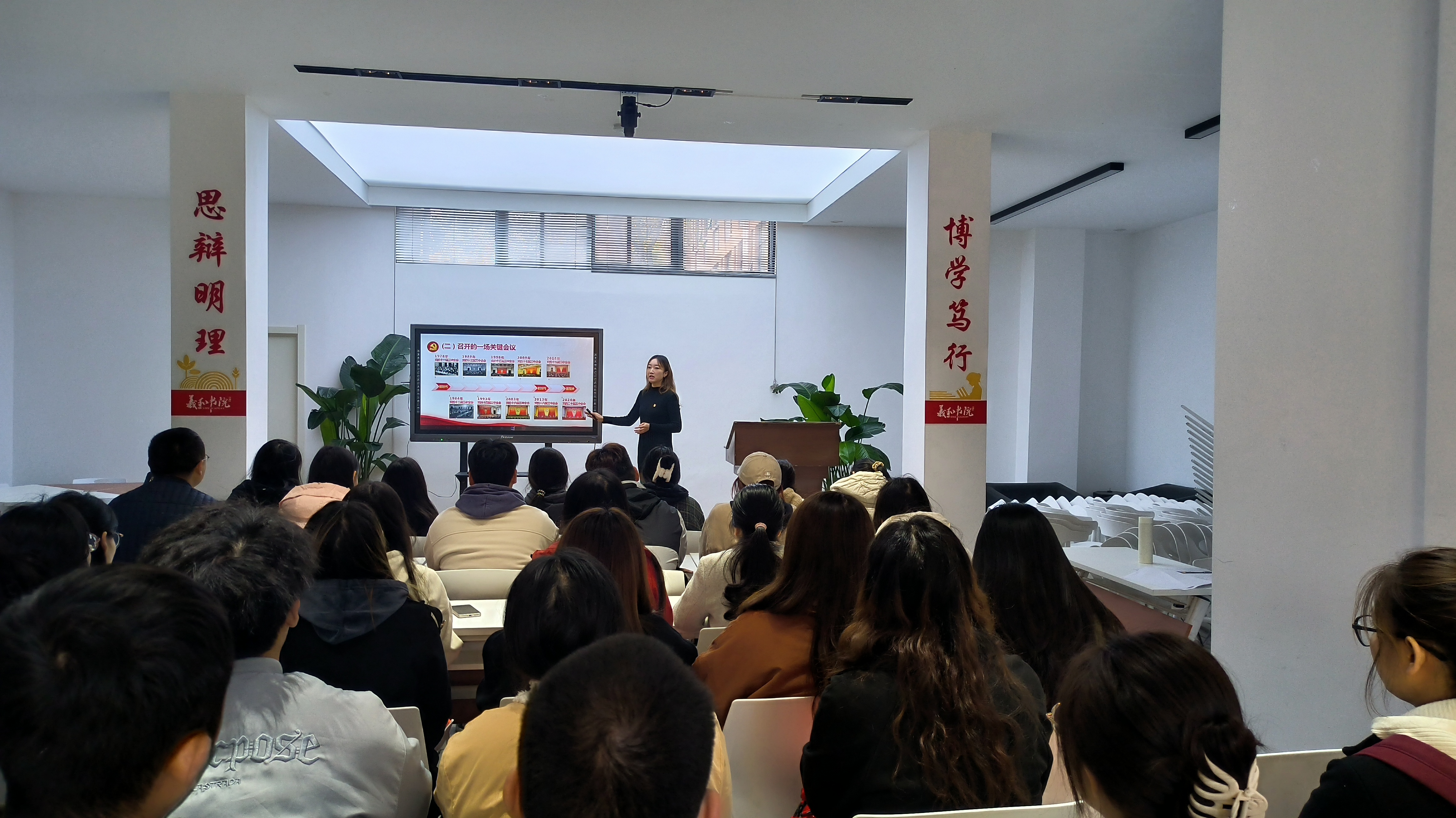 为深入学习贯彻党的二十届三中全会精神,坚持思政课建设与党的创新理论武装同步推进,推动党的二十届三中全会精神在校园落地落实,形成生动实践,11月21日,在羲和书院思哲辩论室成功举办党的二十届三中国全会精神宣讲会。此次会议特邀马克思主义学院讲师宋潘婷主讲,书院辅导员及学生代表参加。