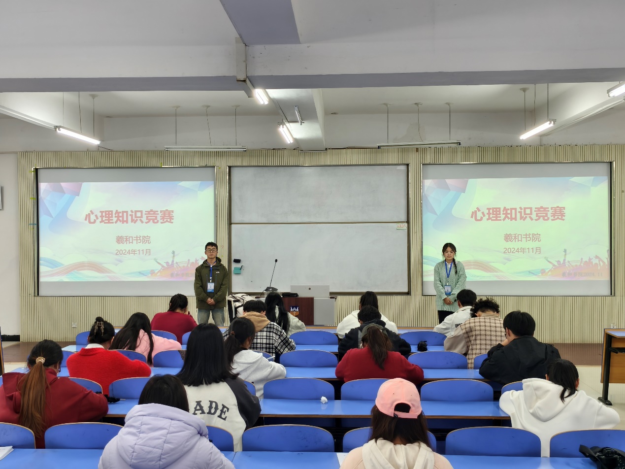 11月12日-15日,举办“智启心光,羲和领航”心理健康知识竞赛。初赛于11月12日在谨学楼B101、B102、B103举行,三百余名学生踊跃参与,紧张有序的氛围弥漫每个角落,在有限的时间内展现出积极的竞赛精神和敏捷的思维能力,最终10名同学脱颖而出,晋级决赛。