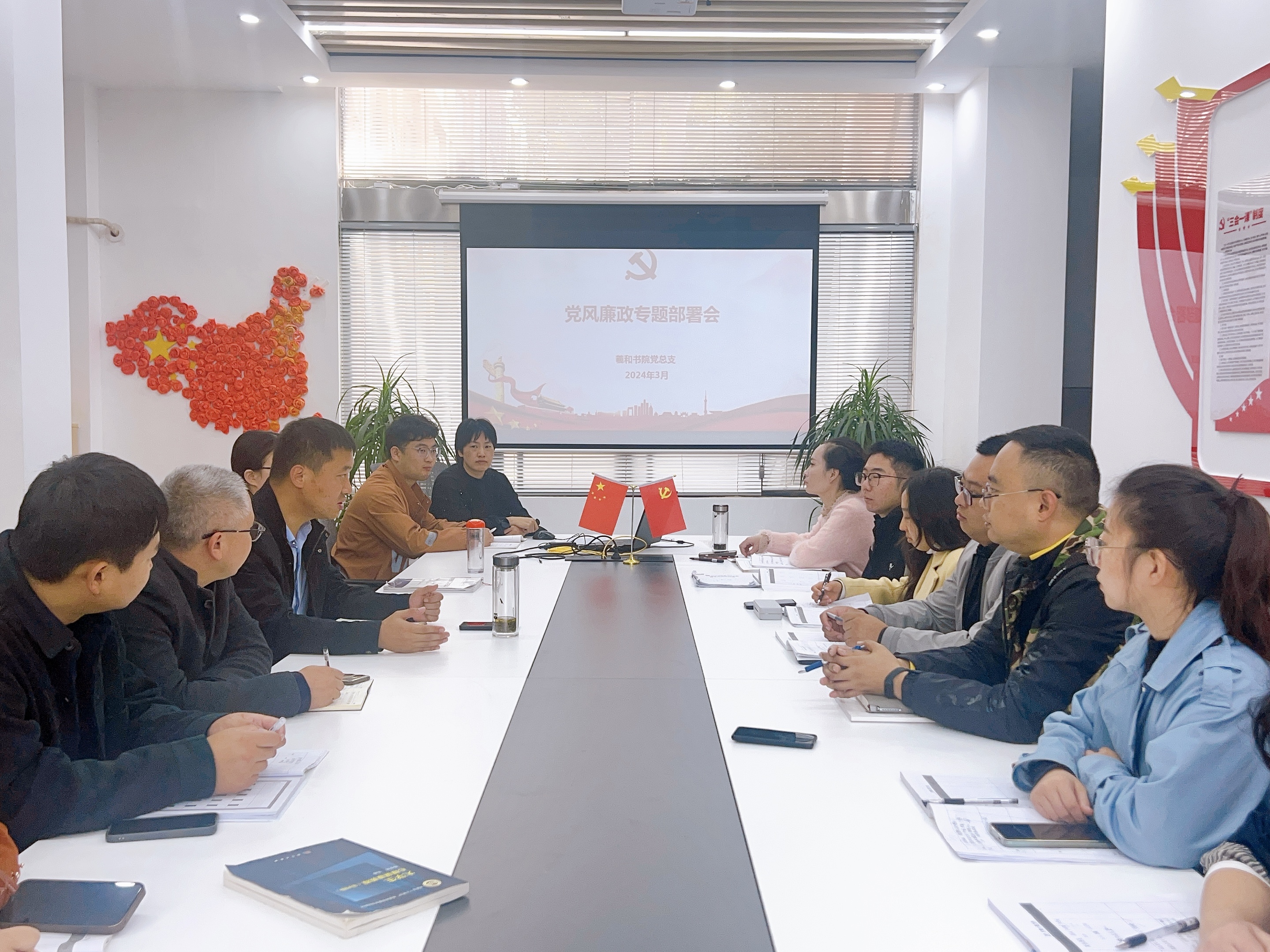 3月18日,在党建驿站召开2024年党风廉政专题部署会议,会议由党总支副书记刘小磊主持,书院全体教职工参加。会议回顾了2023年全年党风廉政建设主要工作,并对2024年上半年党风廉政建设工作作出部署。会议强调要深学细悟习近平总书记关于党的自我革命重要思想,牢牢把握推进全面从严治党的正确方向,把主体责任落细落实,深刻认识推进党风廉政建设和反腐败斗争形势和问题,突出重点,坚定不移把党风廉政建设引向纵深 ;要从强化党的政治建设、推进主题教育与党风廉政建设相融合、持续坚持纠“四风”树新风等方面狠抓党风廉政建设工作。