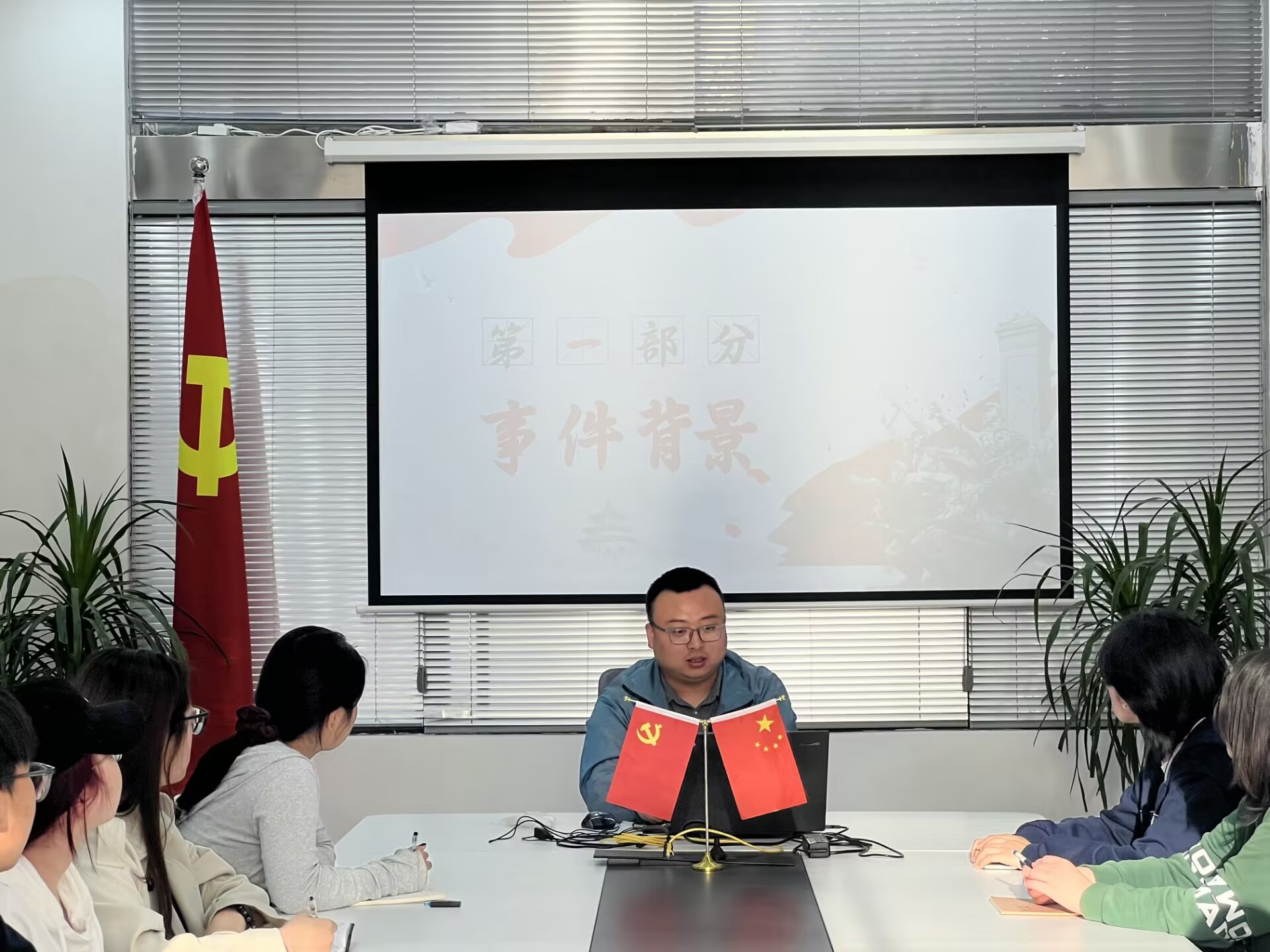 活动伊始,支部成员集中学习一二·九运动的事件背景及成果。一二·九运动公开揭露了日本帝国主义侵略中国、吞并华北的阴谋,广泛地宣传了中国共产党停止内战、一致对外的抗日主张,极大地促进了中国人民的觉醒,掀起了全国抗日救国运动的新高潮。