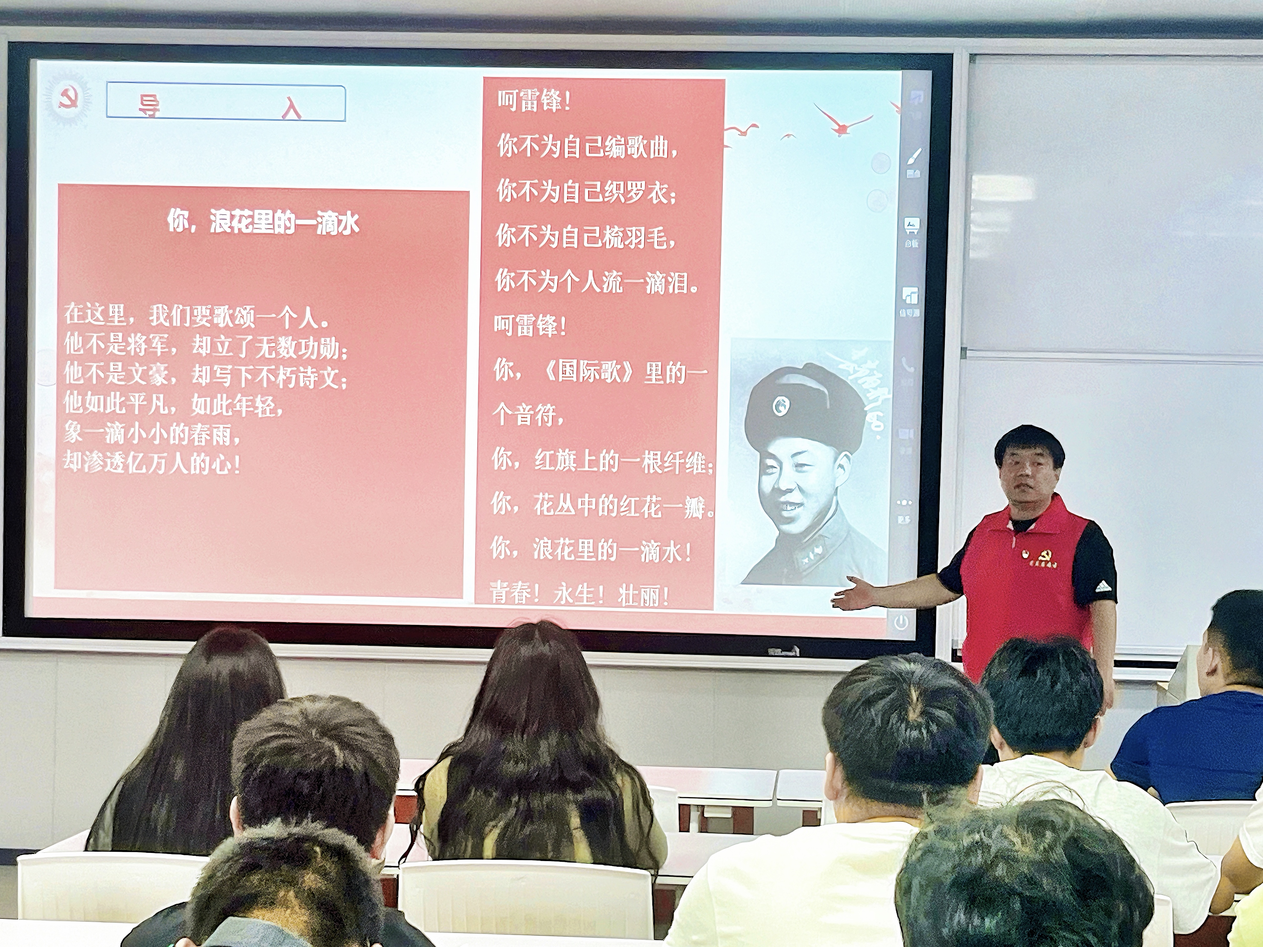 时代的青年党员,更应将其传承下去,从小事做起,为人民服务。”党员赵浩然也表示:“这次党课让我对雷锋精神有了更深刻的理解,我将时刻以雷锋为榜样,在学习生活中发挥党员的先锋模范作用。”