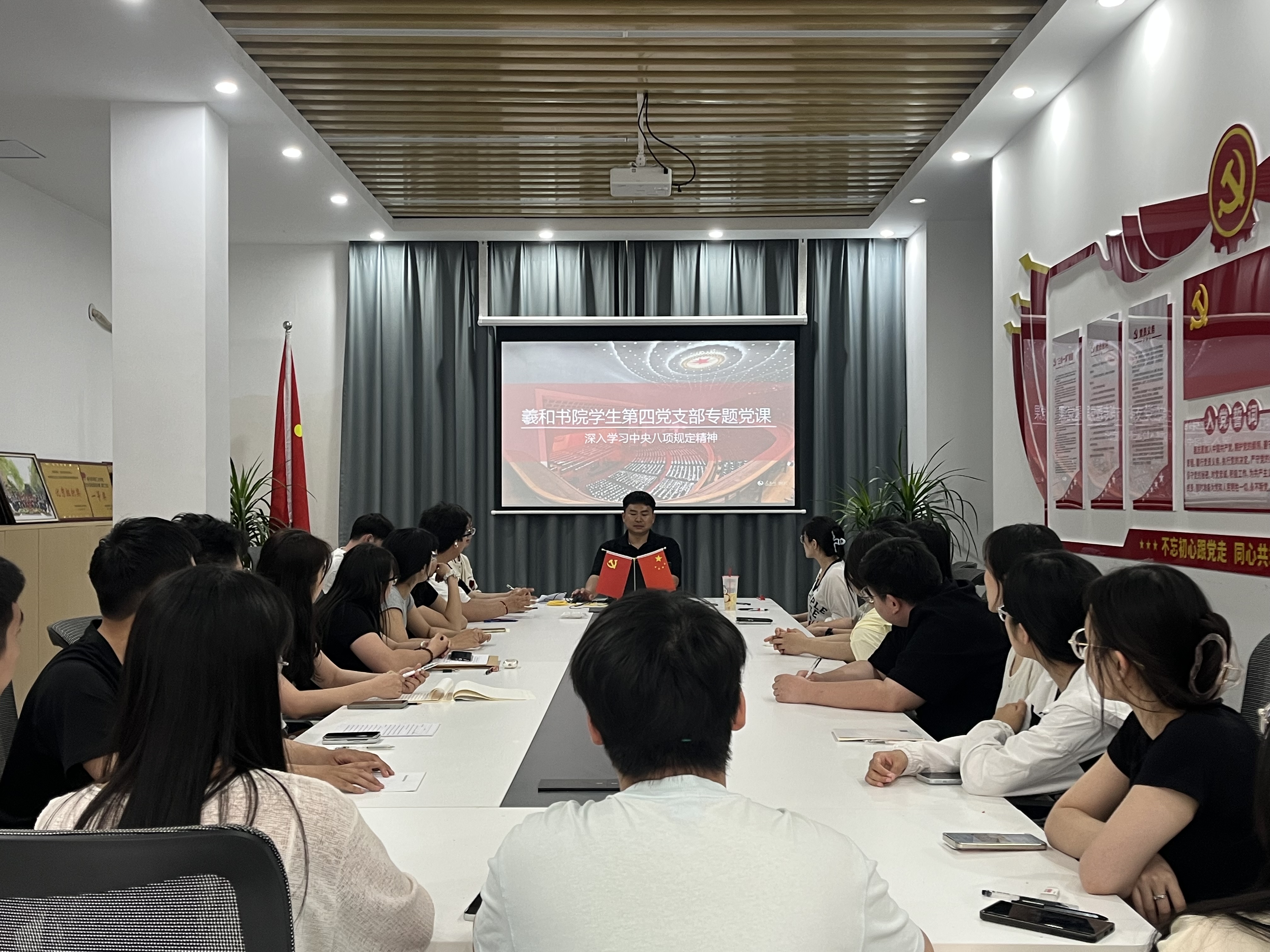 为持续深化作风建设,强化学生党员纪律意识,5月26日下午,羲和书院学生第四党支部在书院党建驿站开展“深入学习中央八项规定精神”专题党课,会议由党支部书记王森主持,全体党员参会。