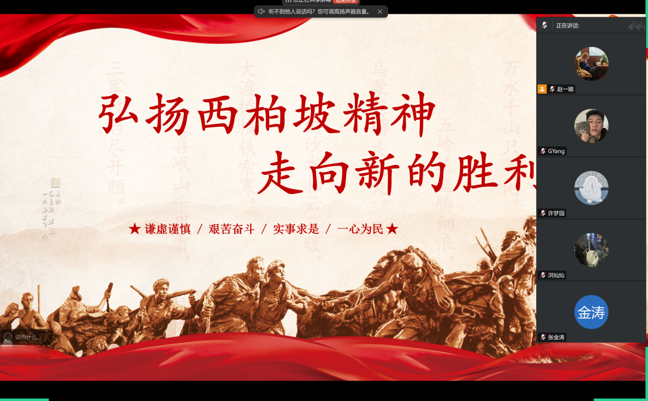 1月21日下午,羲和书院学生第七党支部通过QQ课堂开展“弘扬西柏坡精神 走向新的胜利”专题党课,由支部书记申田裕主讲。