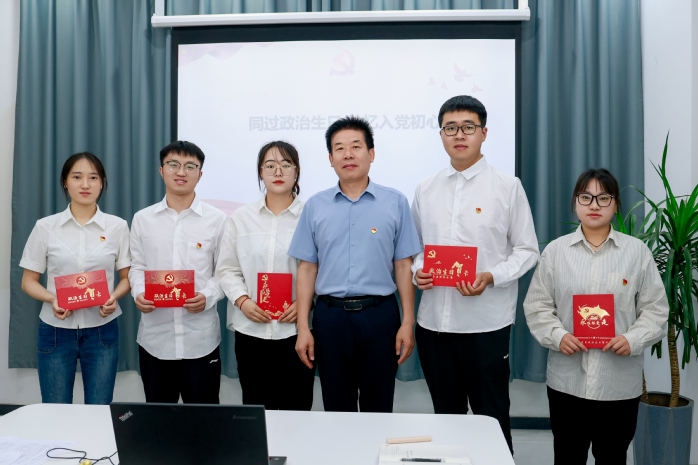 李庚为5月入党的毕业生党员吕启沛、张帆等4位同志过“政治生日”,赠送“政治生日”贺卡,向他们表达了祝福并勉励他们要不忘入党初心,继续践行入党誓词,勇于作为,甘于奉献。