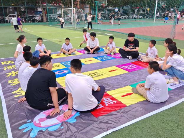 为让防溺水知识“入脑入心”,团队创新推出“沉浸式+可视化”宣教组合拳。“小朋友们,踩进这个飞行棋格子,看看‘独自去野外游泳’要退几格呀?”在新乡市体育场,一块5×5米的超大防溺水地面飞行棋前围满了孩子。格子里“野泳退3格”“正确呼救进2格”的情景问答,让孩子们在投掷骰子、移动棋子的过程中,自然而然记住了水域安全知识。在线上线下,成员们走进公园、商场发放调查问卷,累计回收有效样本2000余份,为后续精准宣教提供数据支撑;在河师大附中红旗学校,宣讲团的成员们登上讲台为一二年级的小朋友讲解防溺水的知识,宣讲团成员们看着孩子们亮晶晶的眼睛,相视一笑,这些用童趣包裹的安全知识,正像种子一样悄悄埋进孩子们心里。