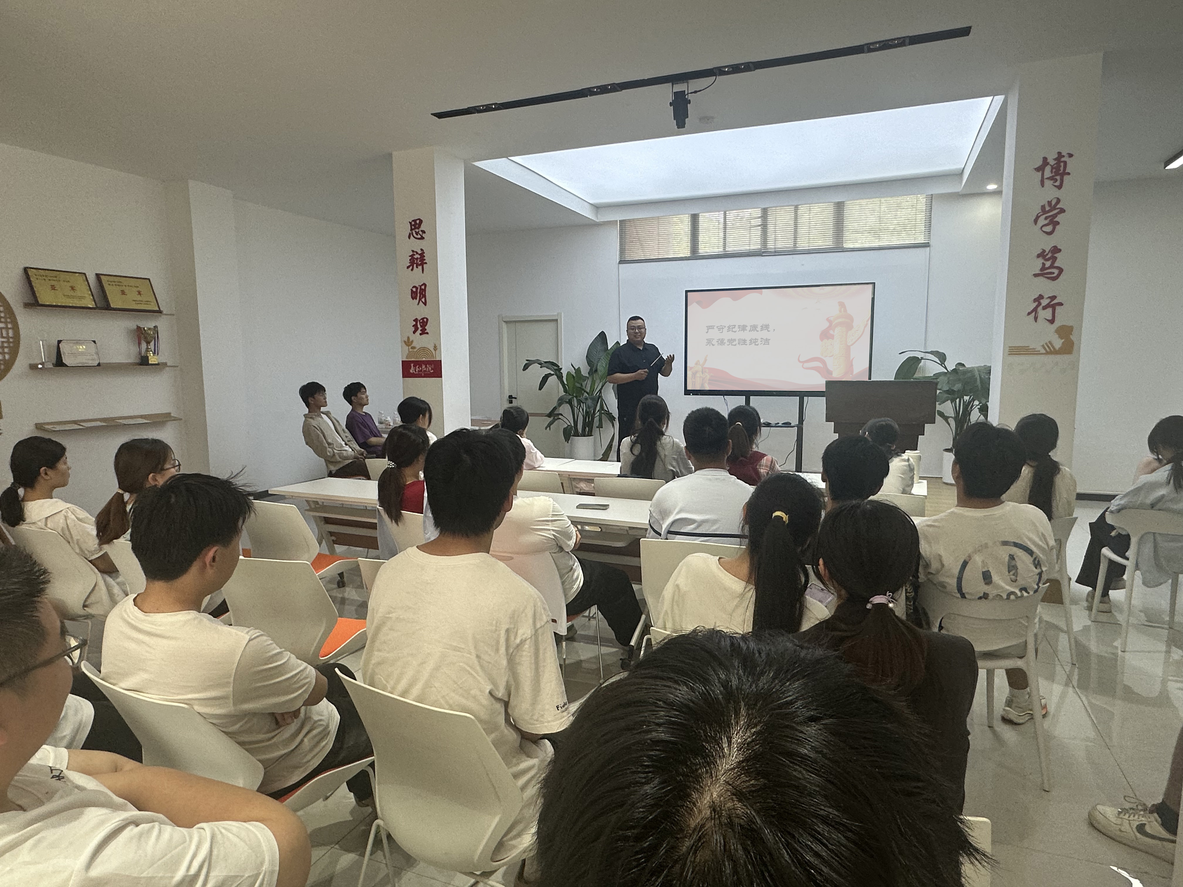 5月13日下午,羲和书院学生第七党支部在党建驿站开展“严守纪律底线,永葆党性纯洁”专题党课,由支部书记申田裕主讲。