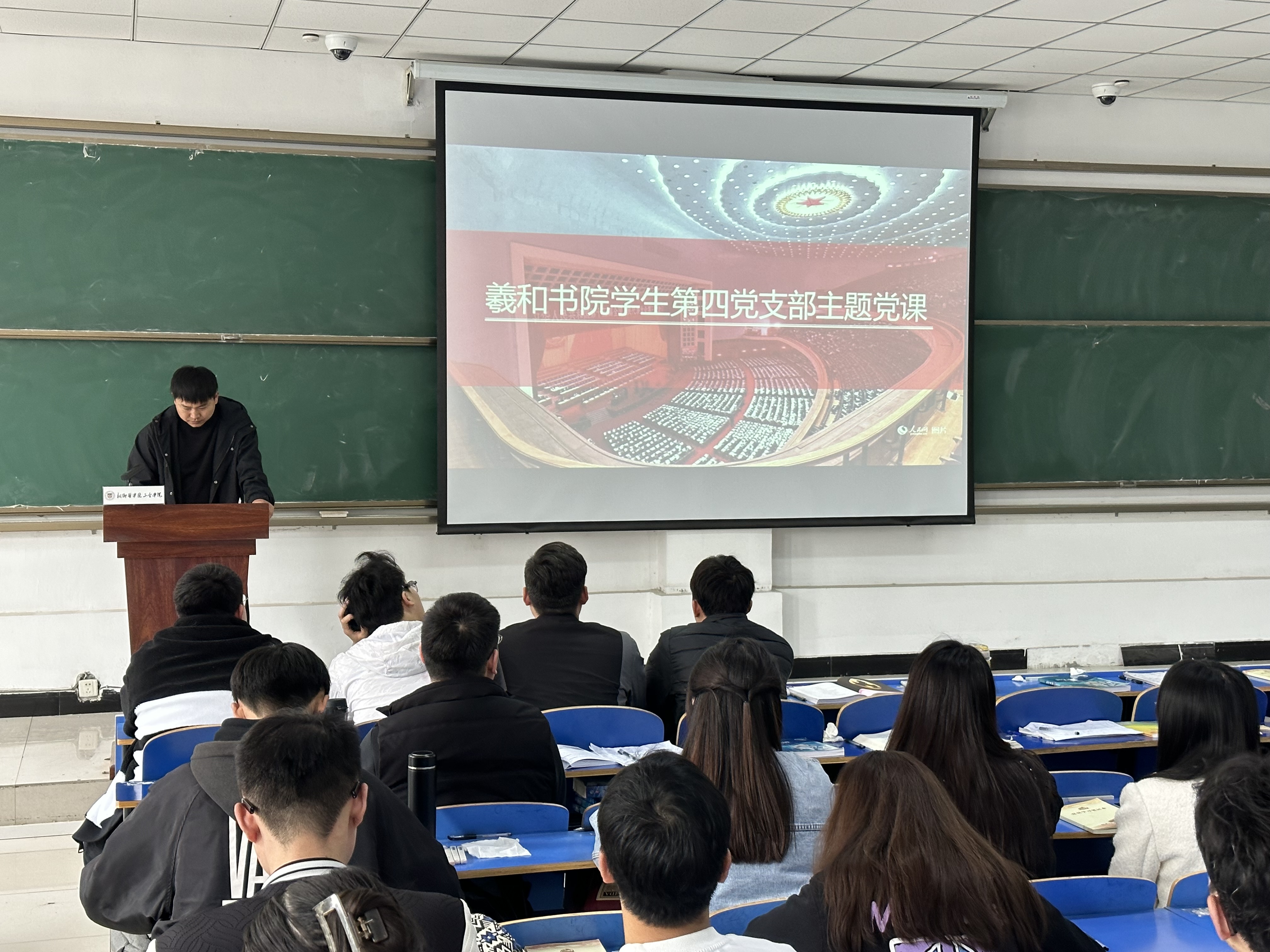 为深入学习贯彻党的二十大报告精神,4月22日,羲和书院学生第四党支部在问101教室开展“党的二十大报告第四章第五章”专题党课学习活动。支部全体党员、预备党员及入党积极分子参加学习,党课由支部书记王森同志主讲。