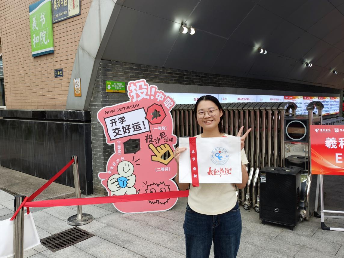 “掷福囊获厚赠 对红卷得再投”活动在书院内温馨启幕。书院将红色历史教育与趣味游戏相结合,通过投掷沙包获得书院专属礼品,更借红色知识问答激励新生传承精神、砥砺前行。活动现场欢声笑语,气氛热烈。新生们手持“福囊”,在划定线前跃跃欲试。