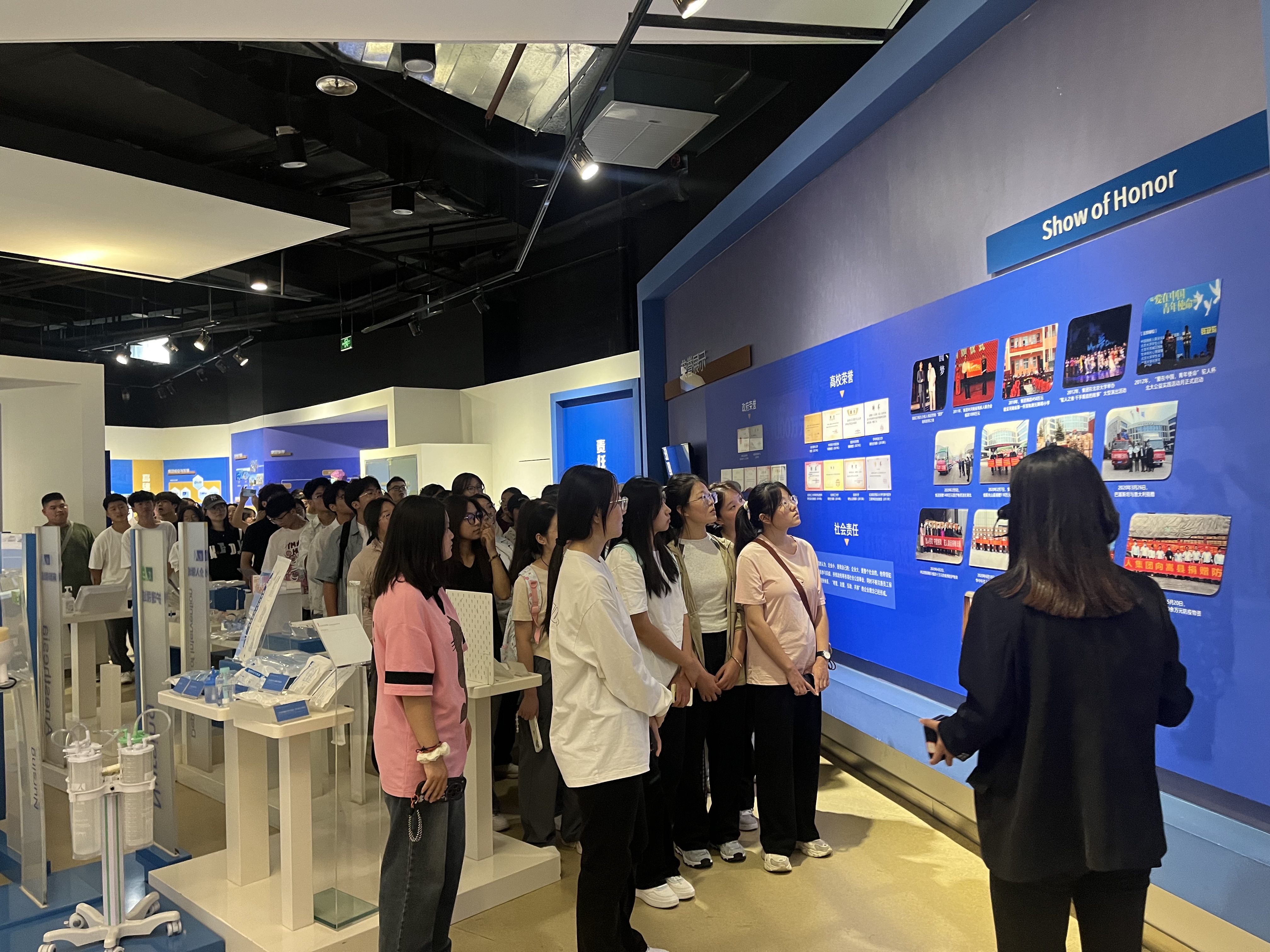 活动伊始,同学们参观了亚洲最大的医学博物馆——驼人医学博物馆。馆内丰富的历史文物、详实的图文资料以及先进的交互设备,系统展示了中外医学发展史、医疗器械的演进历程与现代医疗技术的巨大飞跃。随后,大家前往驼人集团的标志性建筑“八角楼”和研发核心“驼人研究院”,深入观摩产品生产线、实验研究平台及创新研发中心,亲眼见证一枚医疗器械从概念设计到量产上市的全过程,对无菌保障、材料生物相容性、精密制造等关键技术环节形成了具体认知。