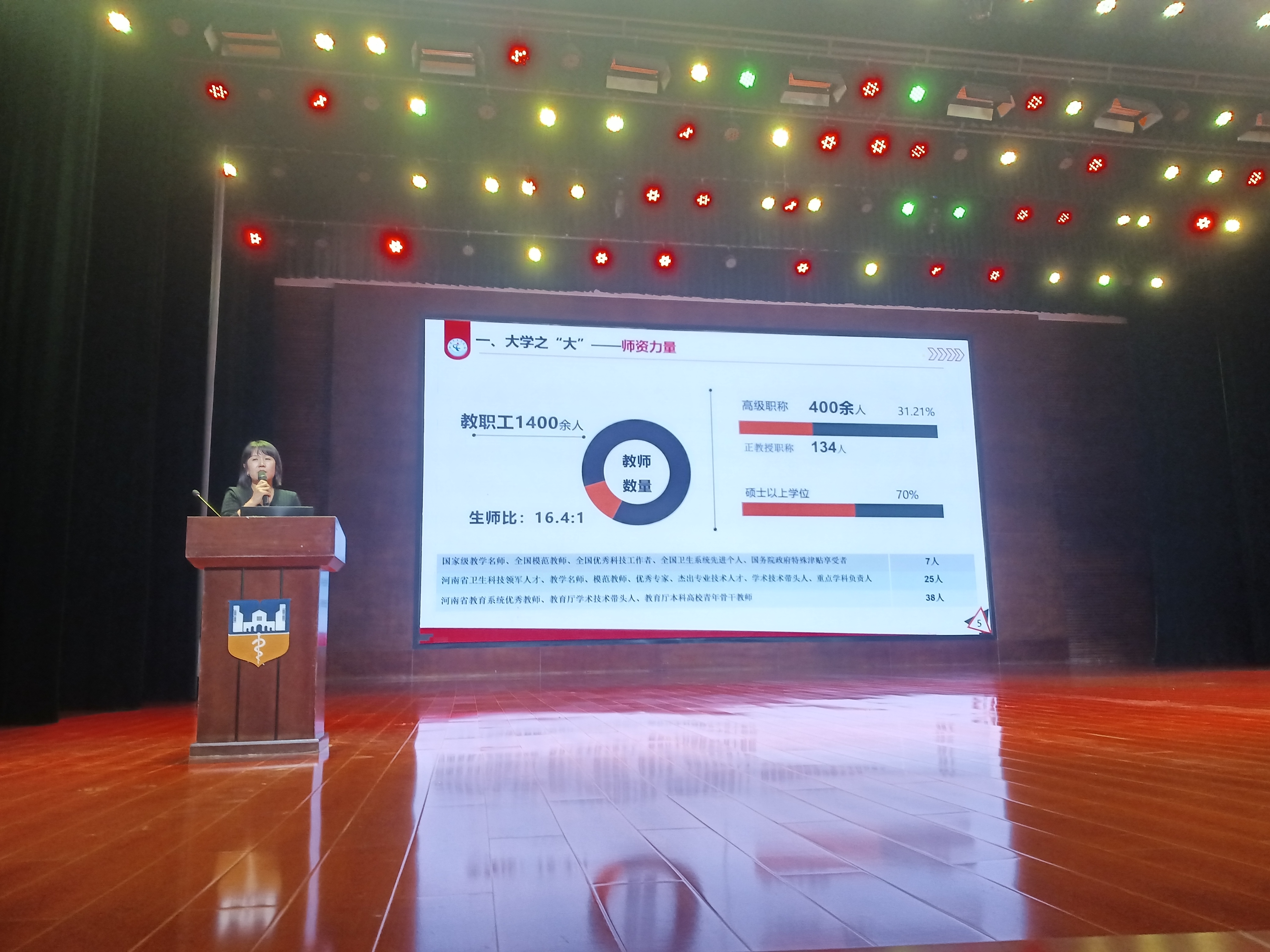 当她重点讲出“豫北医学院在全国21所医学类独立学院中排名第一,位居全国145所独立学院综合实力第六”时,更是获得学生热烈的掌声,让学生对学校有了荣誉感!