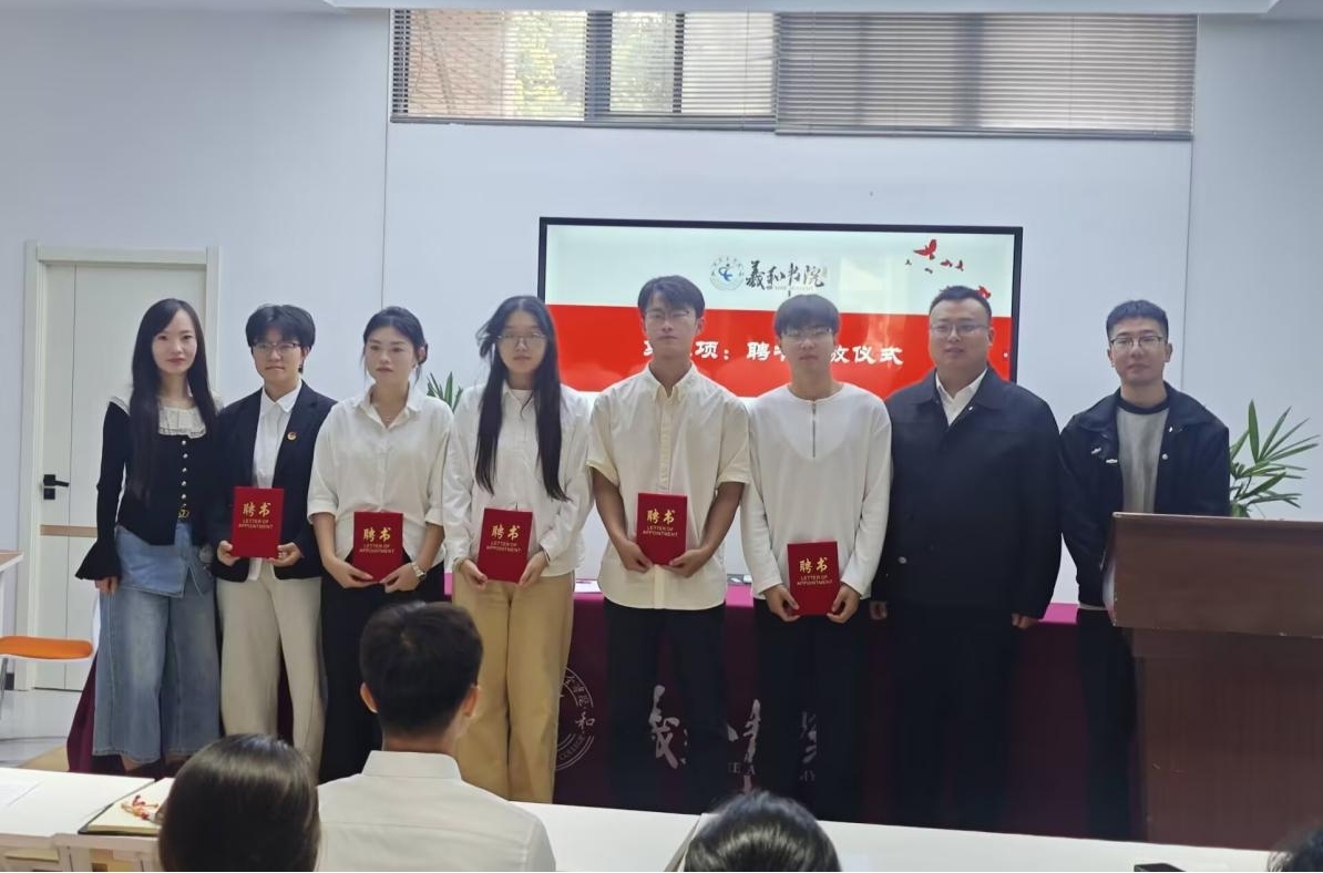 在聘书发放环节,三位指导老师依次为负责人颁发聘书,接过聘书的瞬间,既是荣誉的象征,更是责任的传递,尽显对这份职责的珍视。随后进行合影留念,定格“承责启航” 的重要时刻。会议尾声,全体参会人员按有序排列,共同拍摄集体合照,用影像记录下 “团结奋进” 的初始印记。