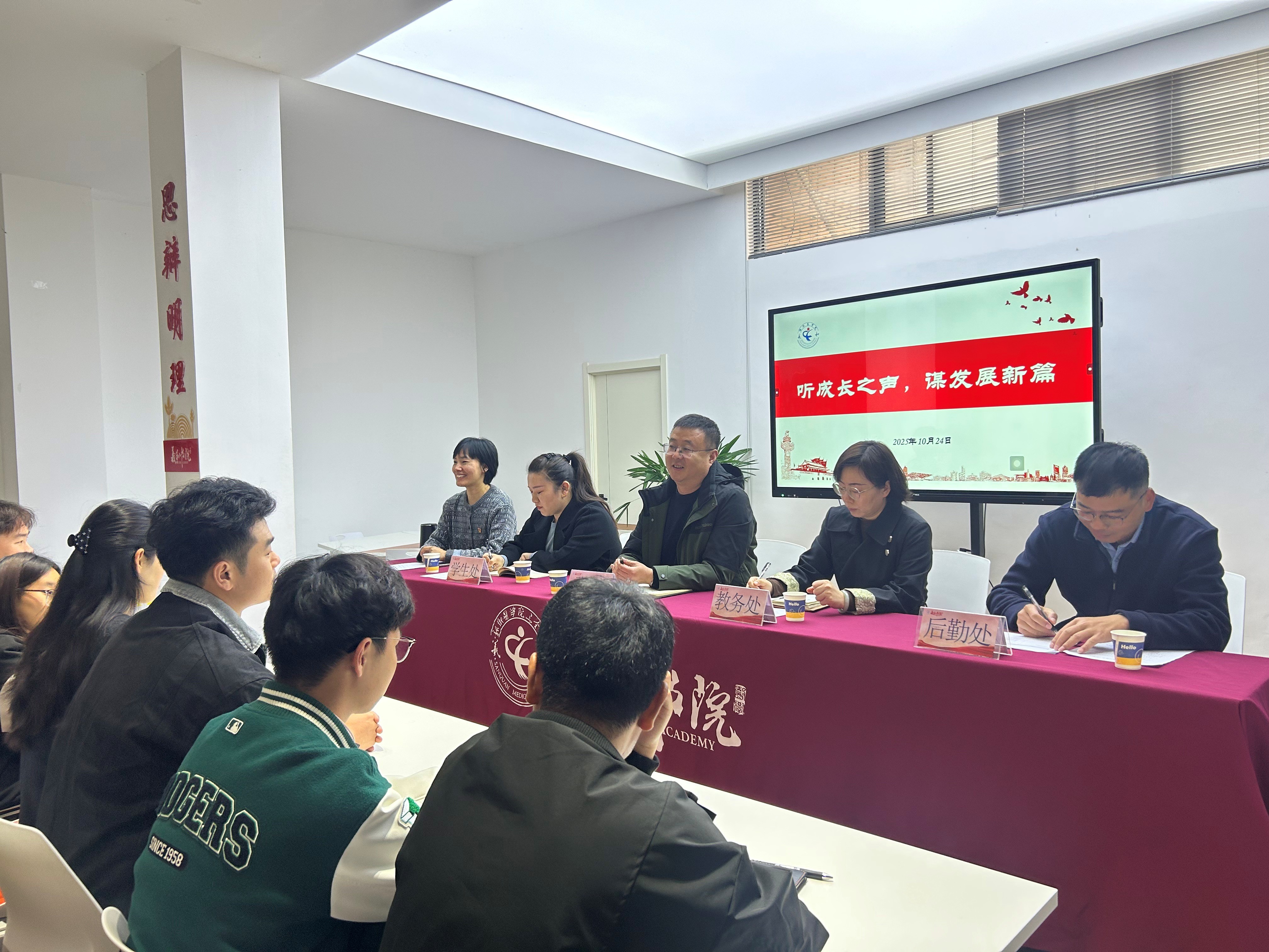 学生代表们结合日常学习与生活,围绕教育教学、管理服务、校园设施、后勤保障等多个方面,提出了富有建设性的意见与建议。同学们发言踊跃,问题实在,诉求具体,充分展现了书院学子关心学校发展、勇于承担责任的主人翁精神。