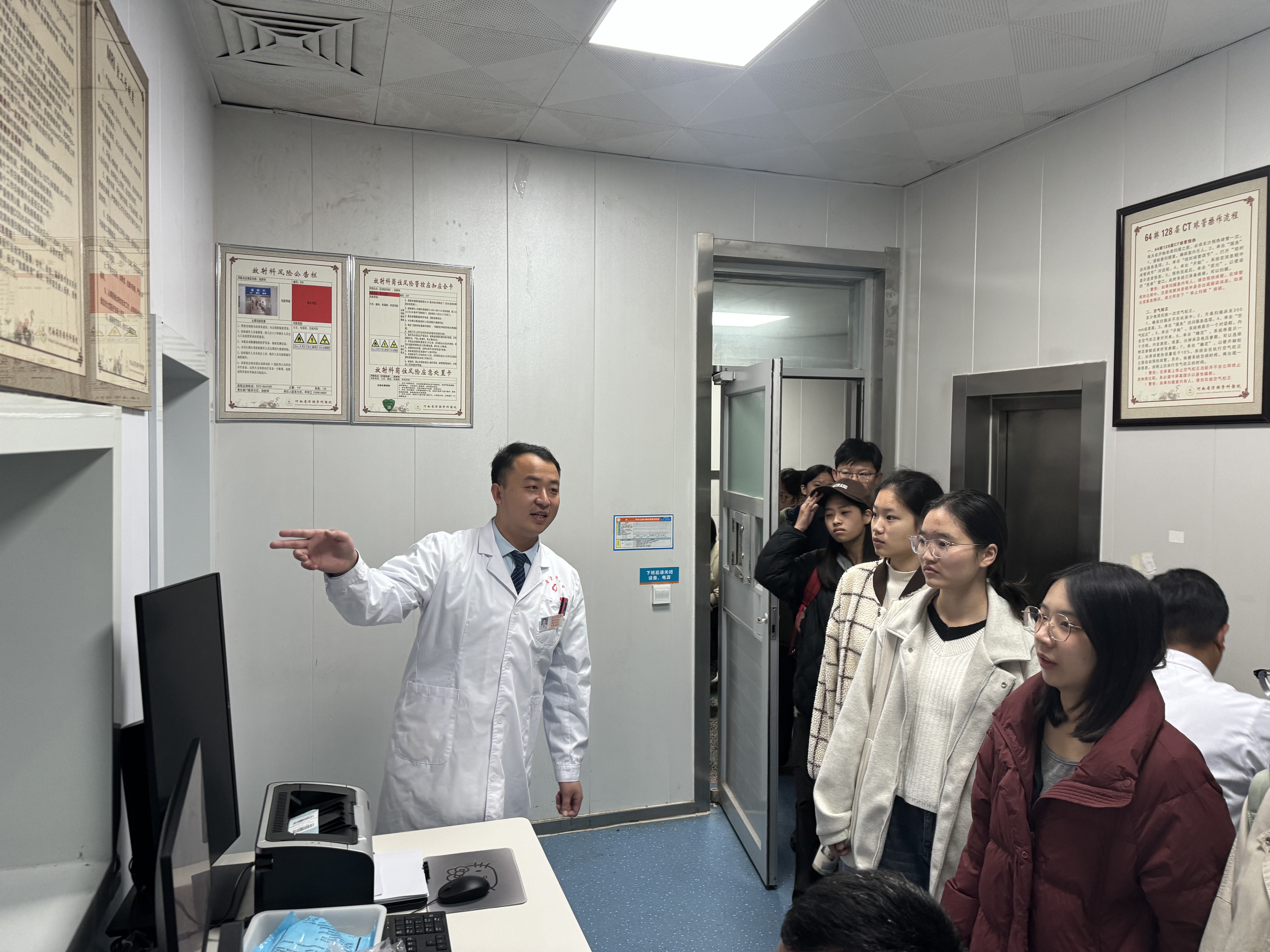 活动首站,同学们走进医院的医学影像中心。先进的核磁共振、CT等设备及其工作流程,让课本上的理论知识变得直观可感。“影像图片不再是抽象的插图,而是诊断的‘导航仪’。”2025级医学影像学专业程敬轩感叹,“我真正理解这份工作为何被称为‘医生的眼睛’。”