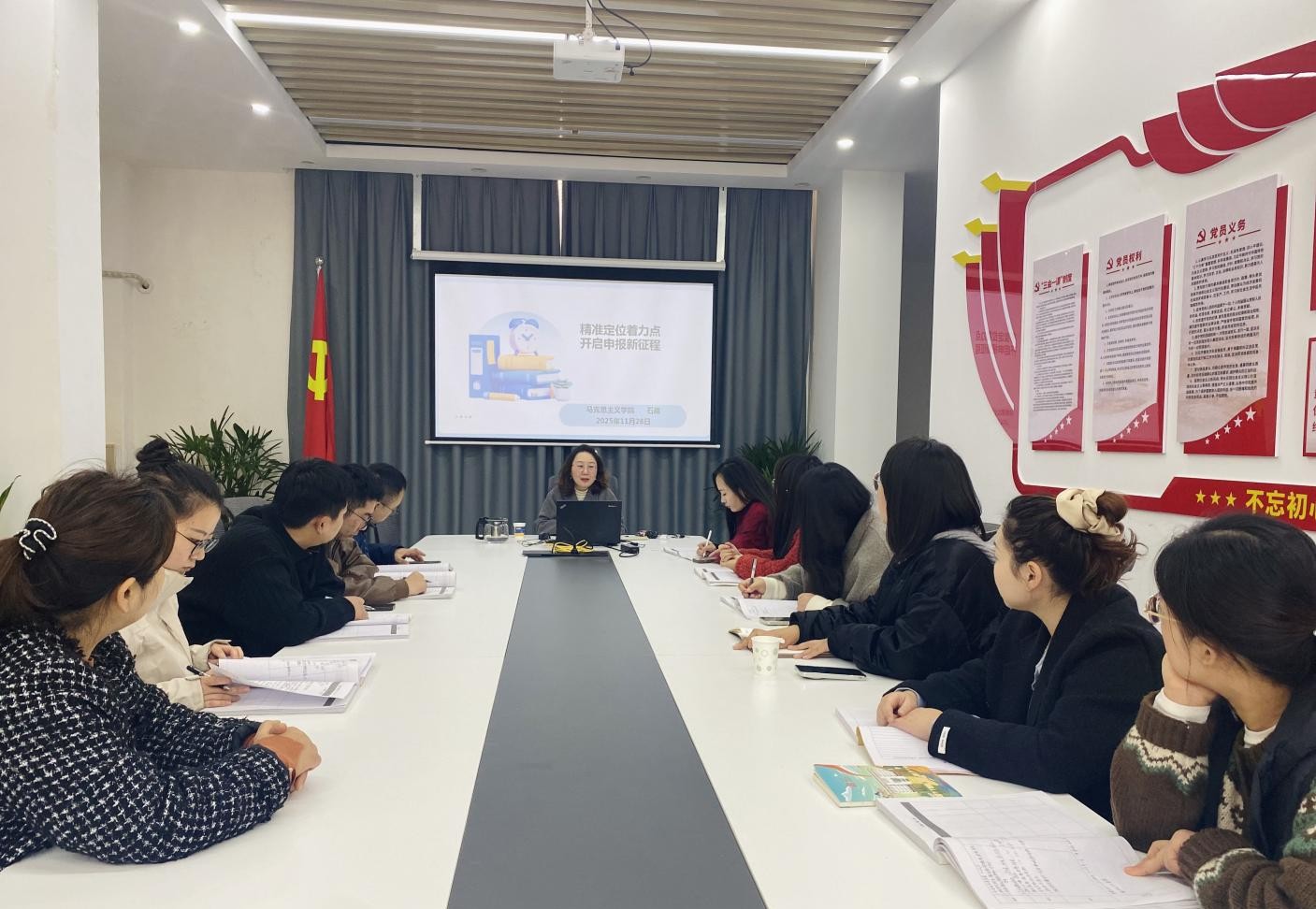 为切实破解教师课题申报中的难点堵点,全面提升全院教师科研水平,11 月 28 日,羲和书院特邀马克思主义学院毛泽东思想和中国特色社会主义理论体系概论教研室主任石霞开展科研能力提升专题讲座,书院全体辅导员老师参加。