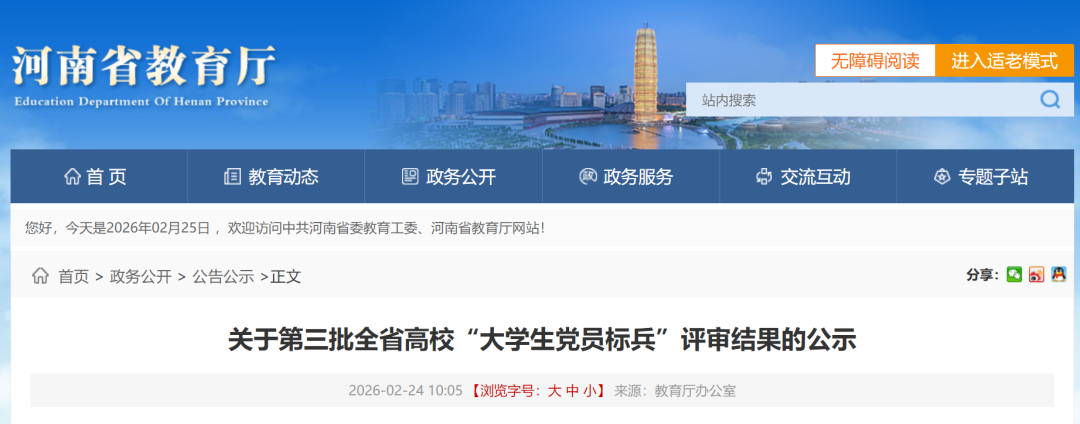 河南省高校“大学生党员标兵”选树活动由省委教育工委统筹部署,是全省高校强化学生党员队伍建设、发挥先锋模范作用的重要举措。评选以政治坚定、品德优良、学业优异、作用突出为核心标准,经过学校推荐、层层筛选、省级严格评审等规范流程确定最终人选。此次赵璐瑶同学获此省级殊荣,既是对其个人综合素养与先锋表率作用的高度认可,更是我校坚持高质量党建引领高质量人才培养的生动体现。