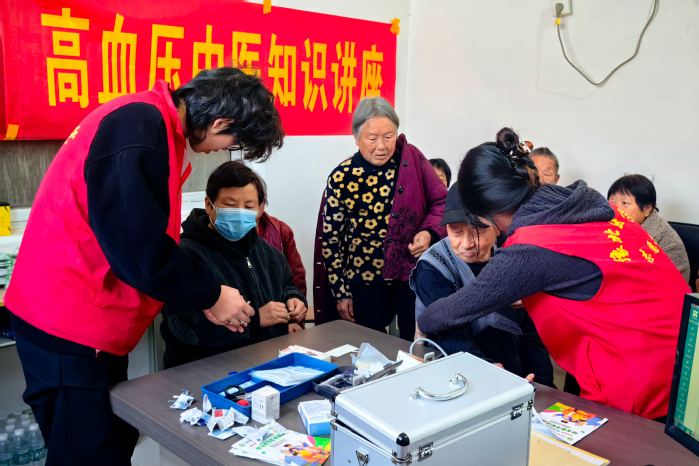 紧扣“小而实、新而活”原则,书院组织师生志愿者走进桥北乡老庄村,开展“雷锋月践初心·医者情暖乡村”志愿服务。志愿者与当地卫生室医护人员携手,为乡村老人提供免费血压、血糖监测,细致记录数据并给出健康指导;结合春季气候特点,以拉家常的方式开展传染病预防科普宣讲,答疑解惑并传授健康知识,将专业医疗服务与温暖关怀送至基层,让雷锋精神与医者仁心深度融合。