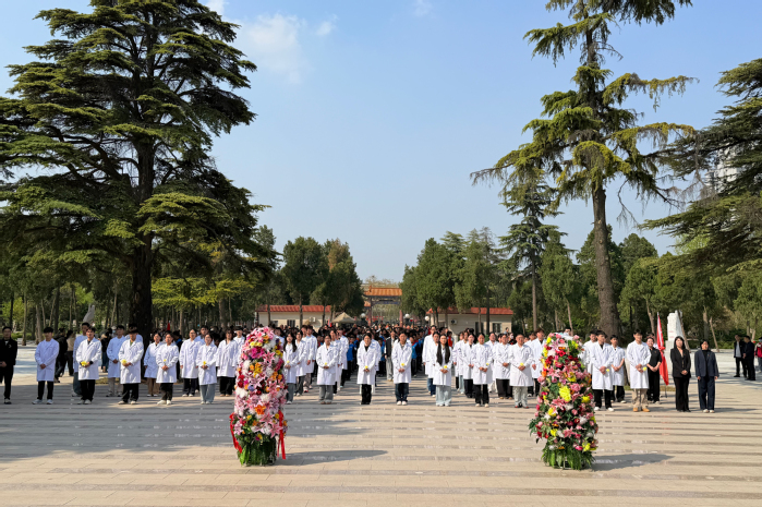 4月1日上午,师生党员及入党积极分子代表前往新乡市烈士陵园,开展“祭奠革命先烈”缅怀追思活动。